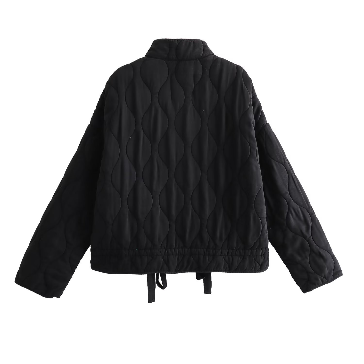 아마존 도매 가을 새로운 여성의 모든 매치 스탠드 칼라 지퍼 포켓 긴 소매 면 재킷