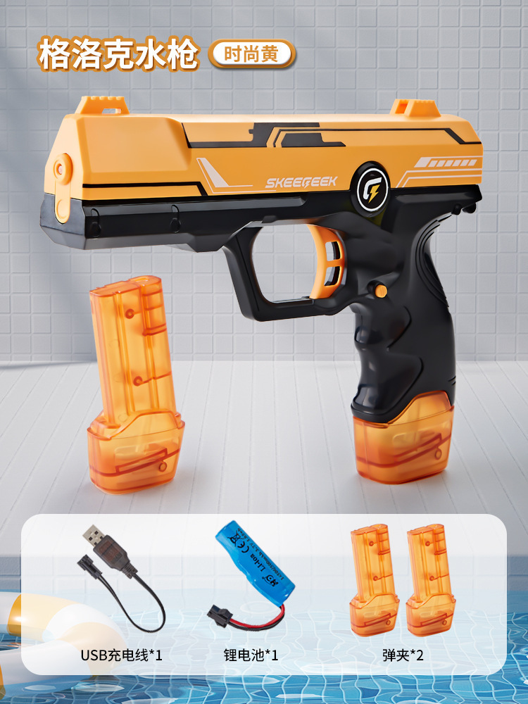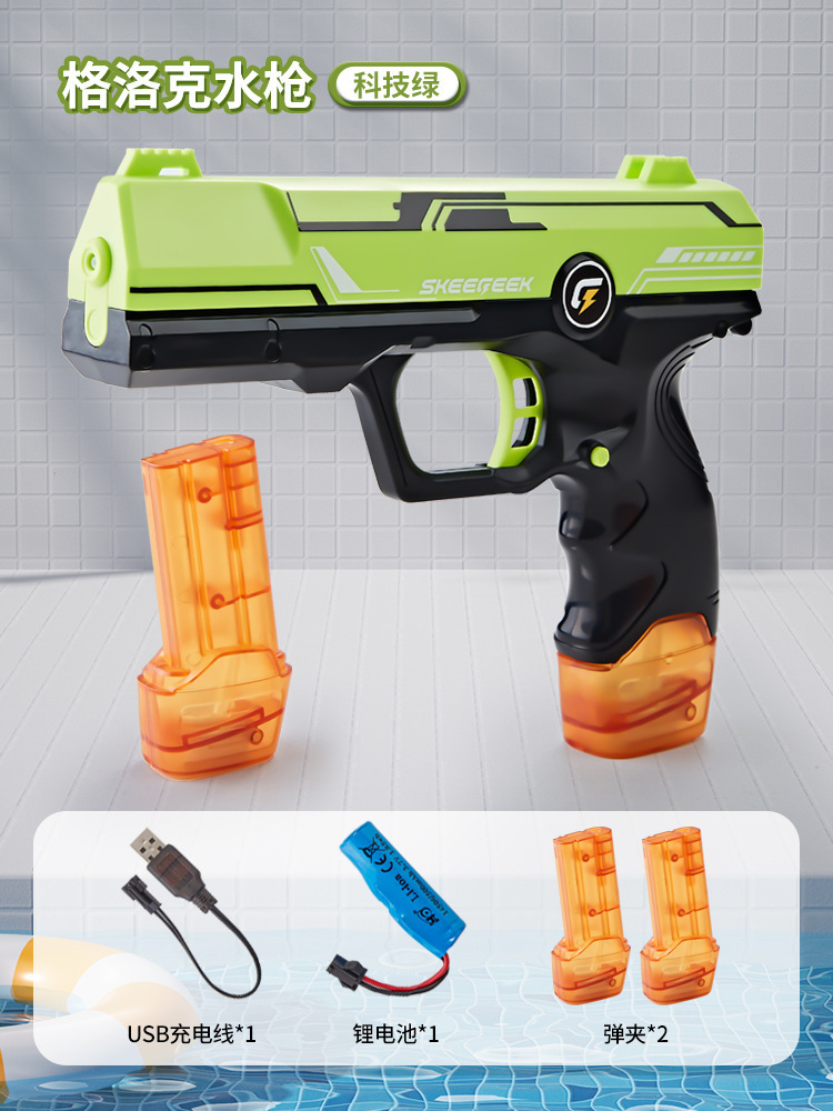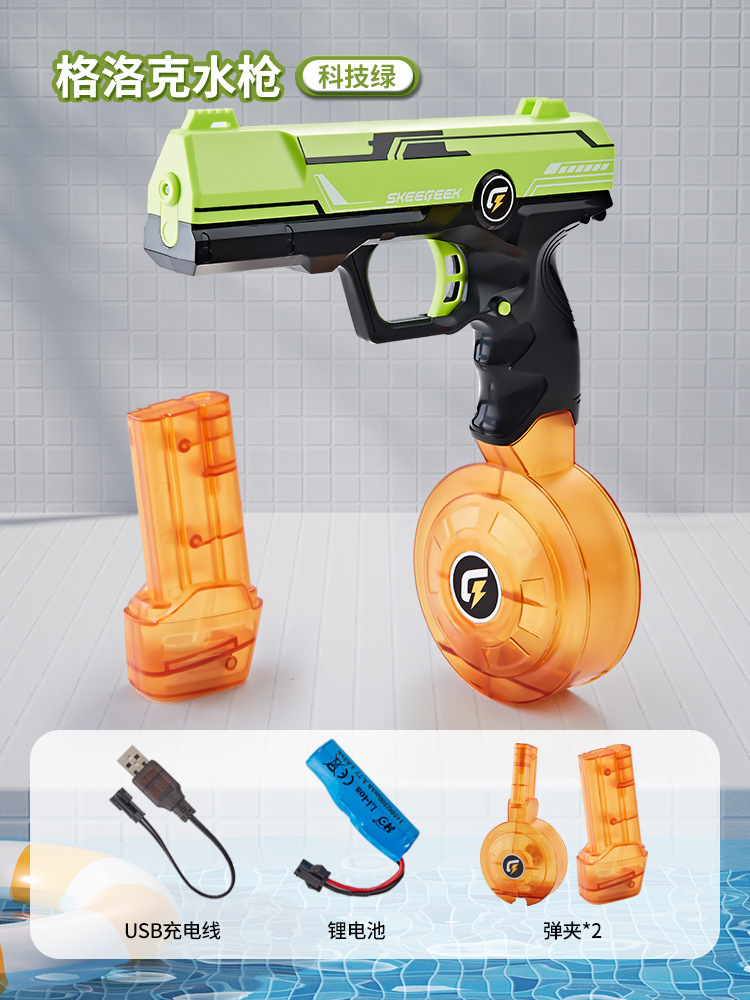 쉐이크 톤 새로운 전기 물총 장난감 블랙 기술 연속 자동 물 스프레이 고압 물 튀는 물총 글록