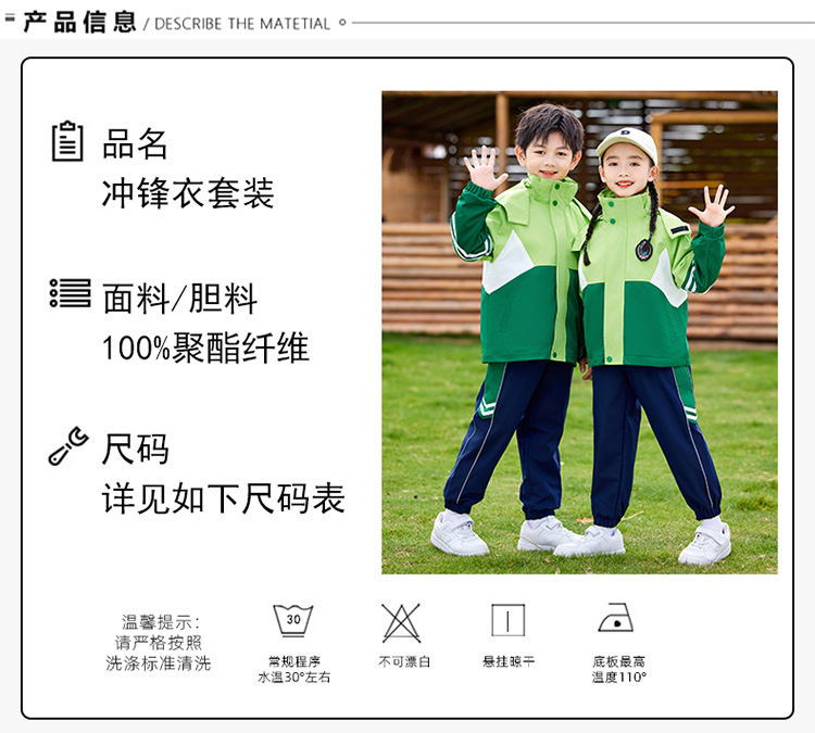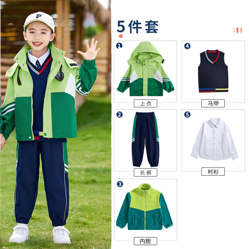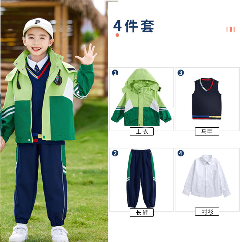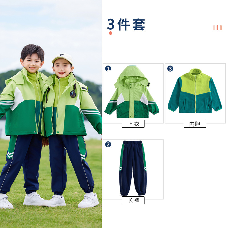 유치원 정원복 봄 가을 겨울 새 러시 옷 3 종 세트 초등학교 교복 운동복 녹색 아동 수업복