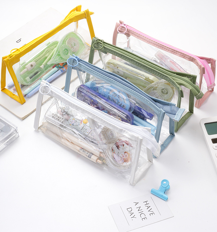 심플 투명 필통 시험 대용량 학생 문구 삼각 문구 가방 연필 가방 이우 도매