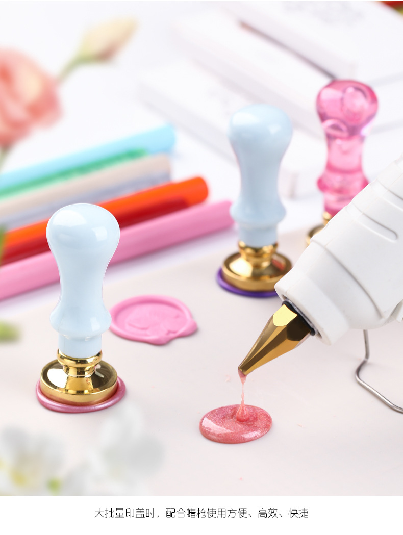 火漆印章手柄 马卡龙色 金属全铜柄火漆蜡 火漆印章木制把柄 批发