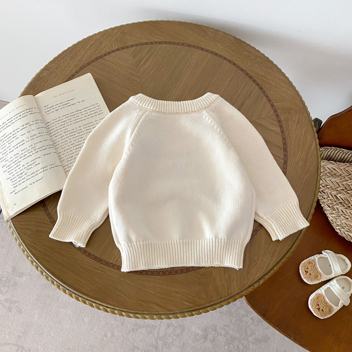 한국 스타일 인스풍 아기 긴팔 라운드넥 니트 어깨 버튼형 곰돌이 보온 스웨터 아기 가을 겨울옷스토어 가기