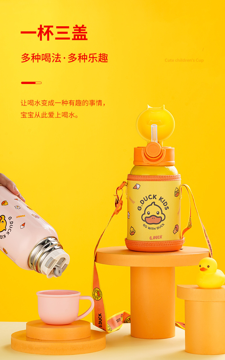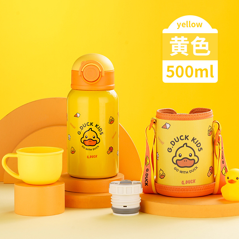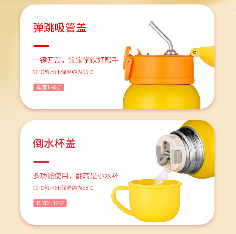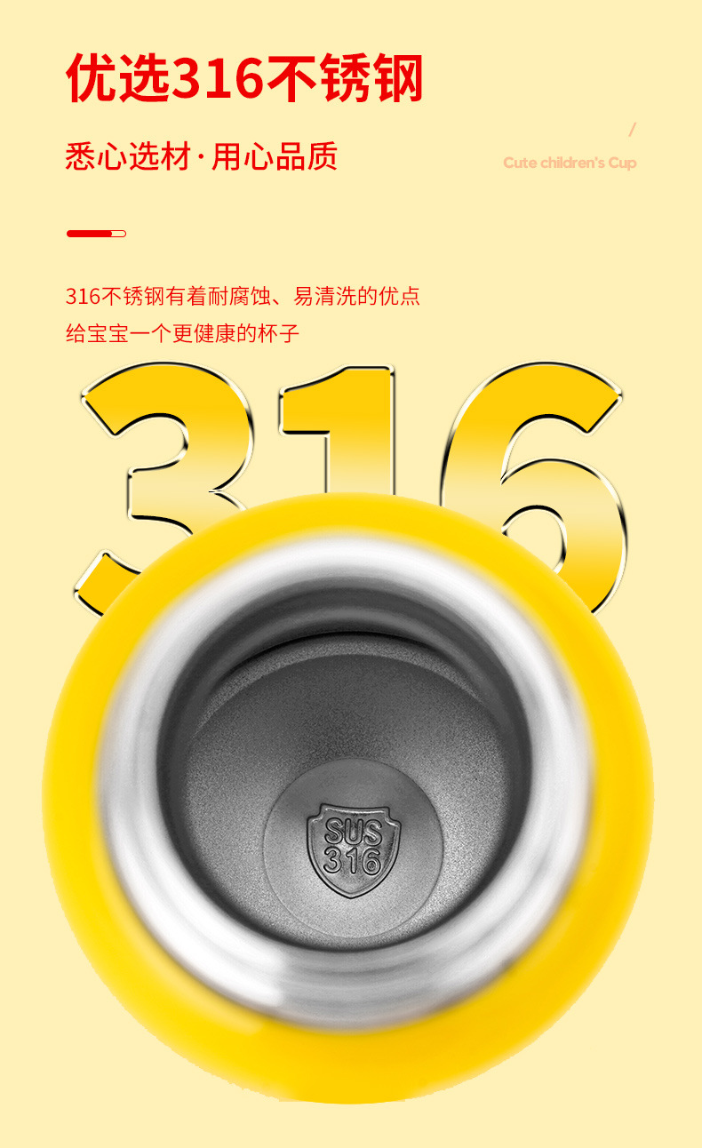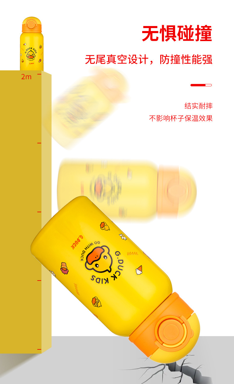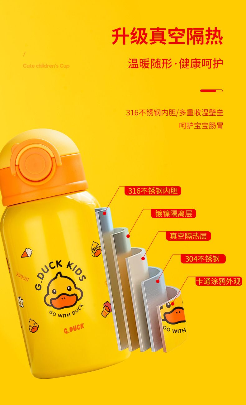 작은 노란 오리 어린이 보온병, 식품 등급 316 학생용 빨대 물컵, 학교용 컵, 휴대용 물병, 316 스테인리스 스틸스토어 가기