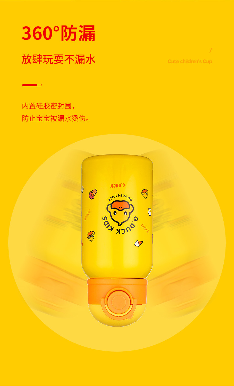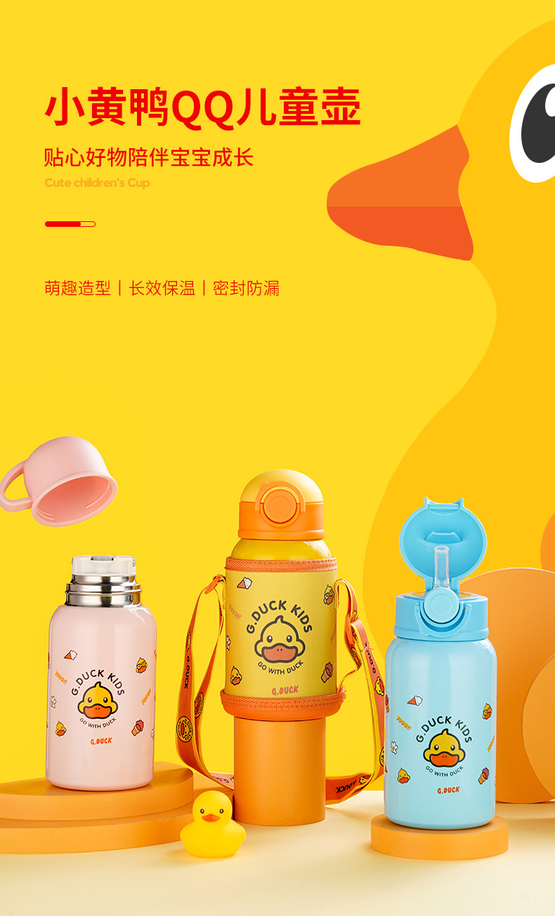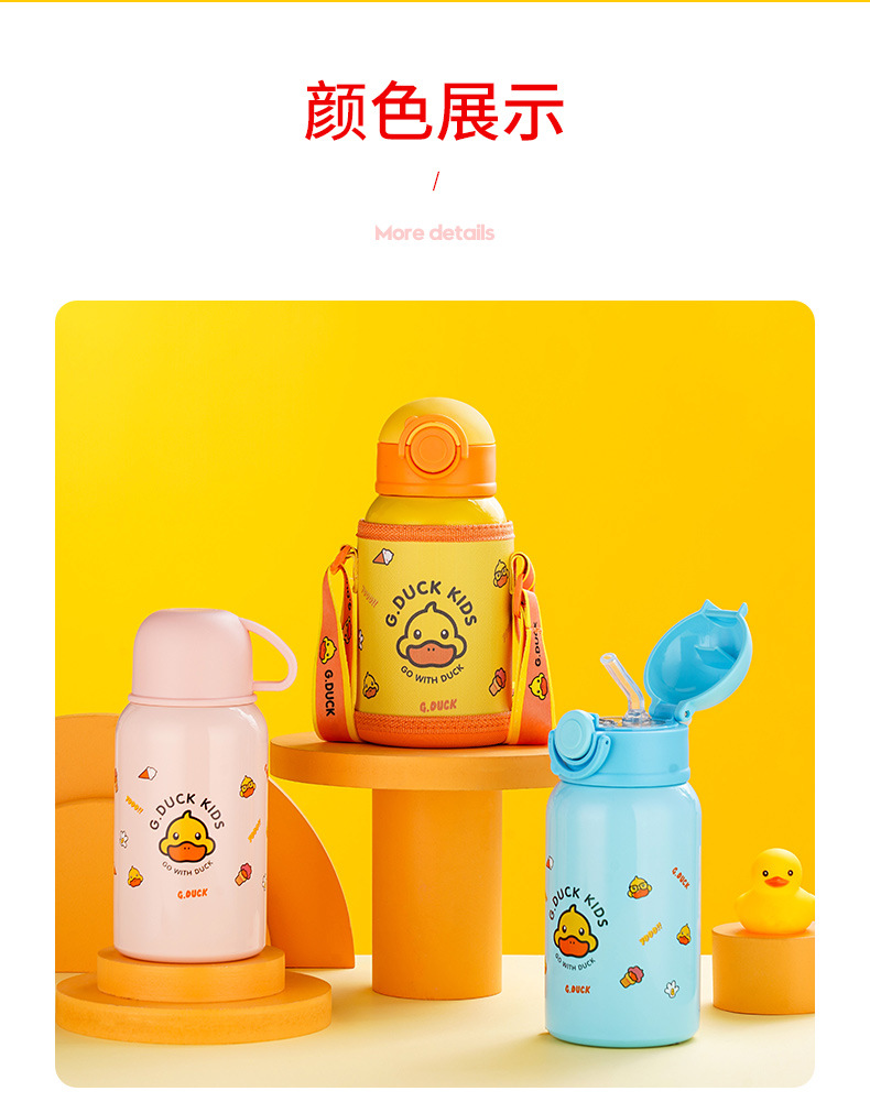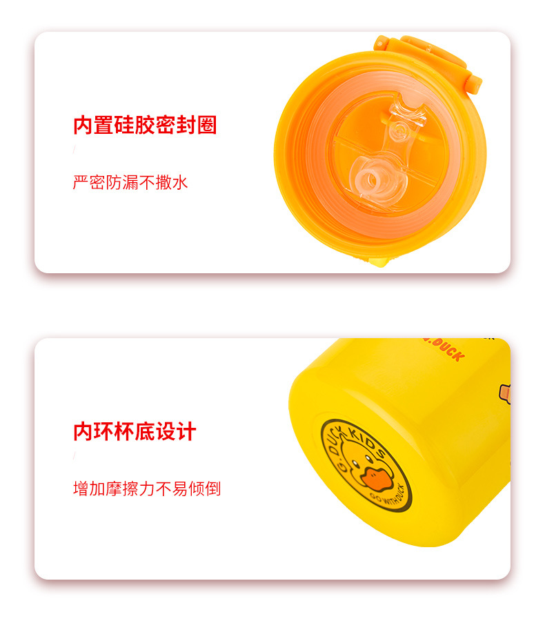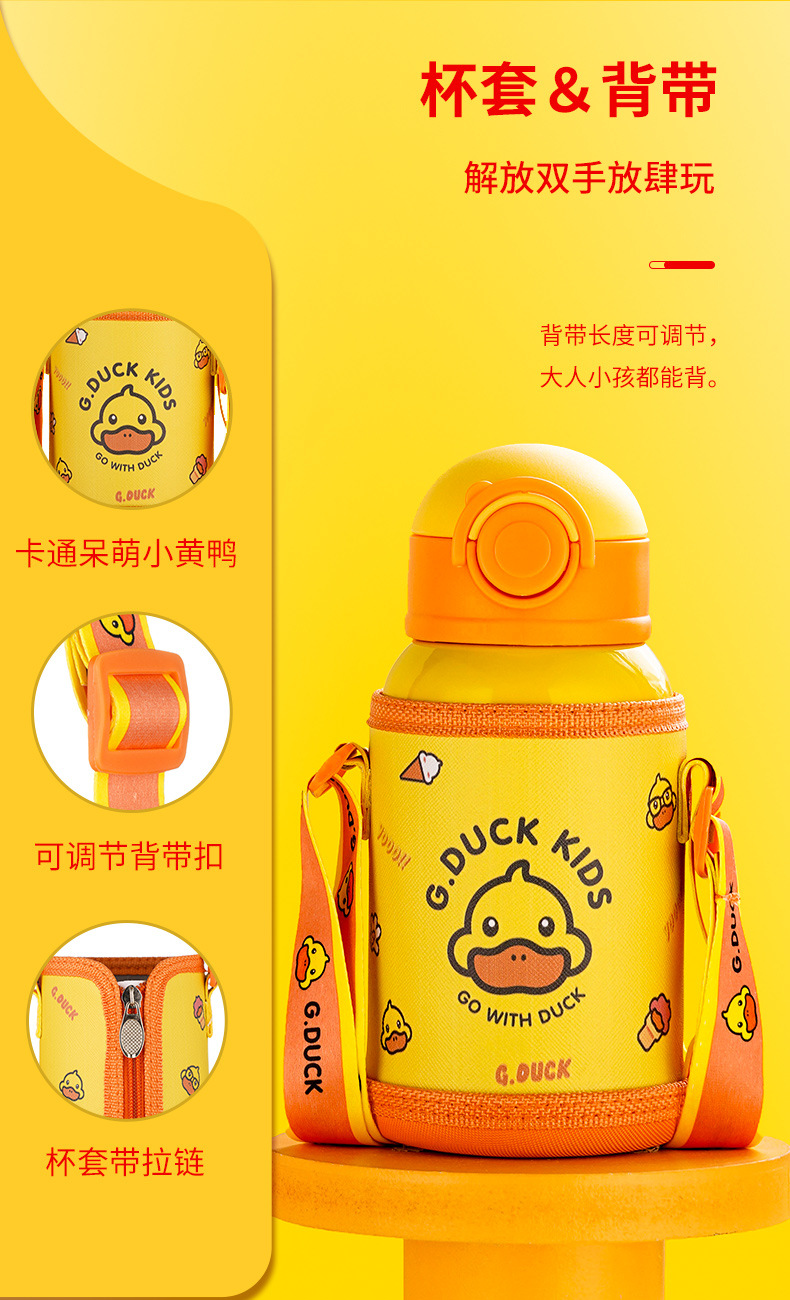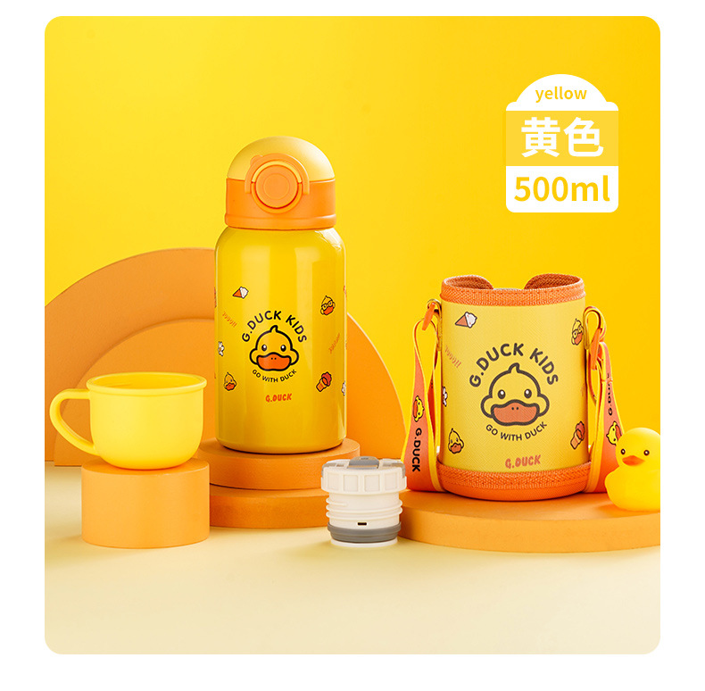 작은 노란 오리 어린이 보온병, 식품 등급 316 학생용 빨대 물컵, 학교용 컵, 휴대용 물병, 316 스테인리스 스틸스토어 가기