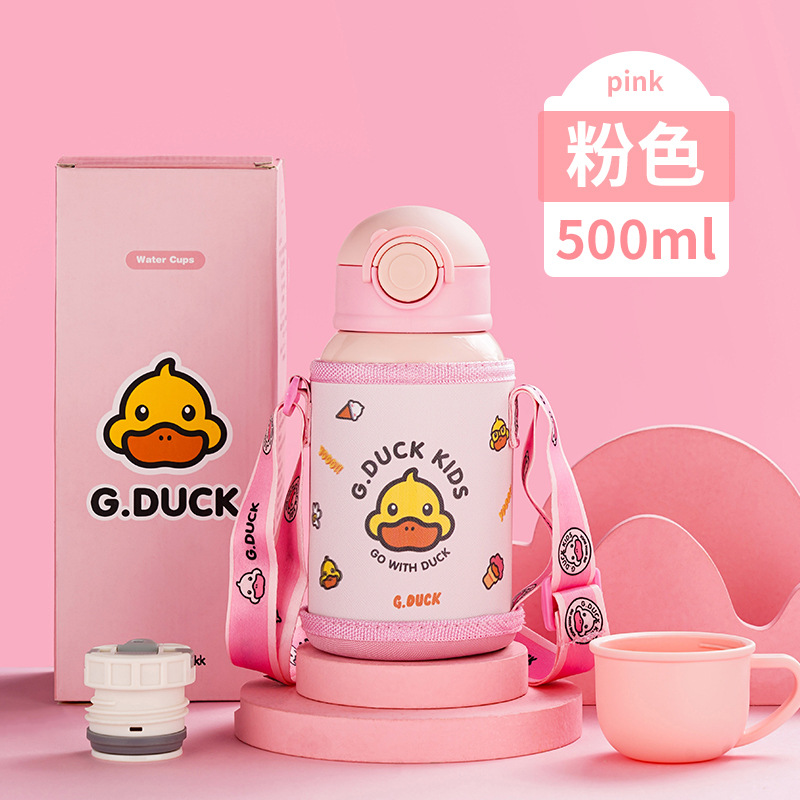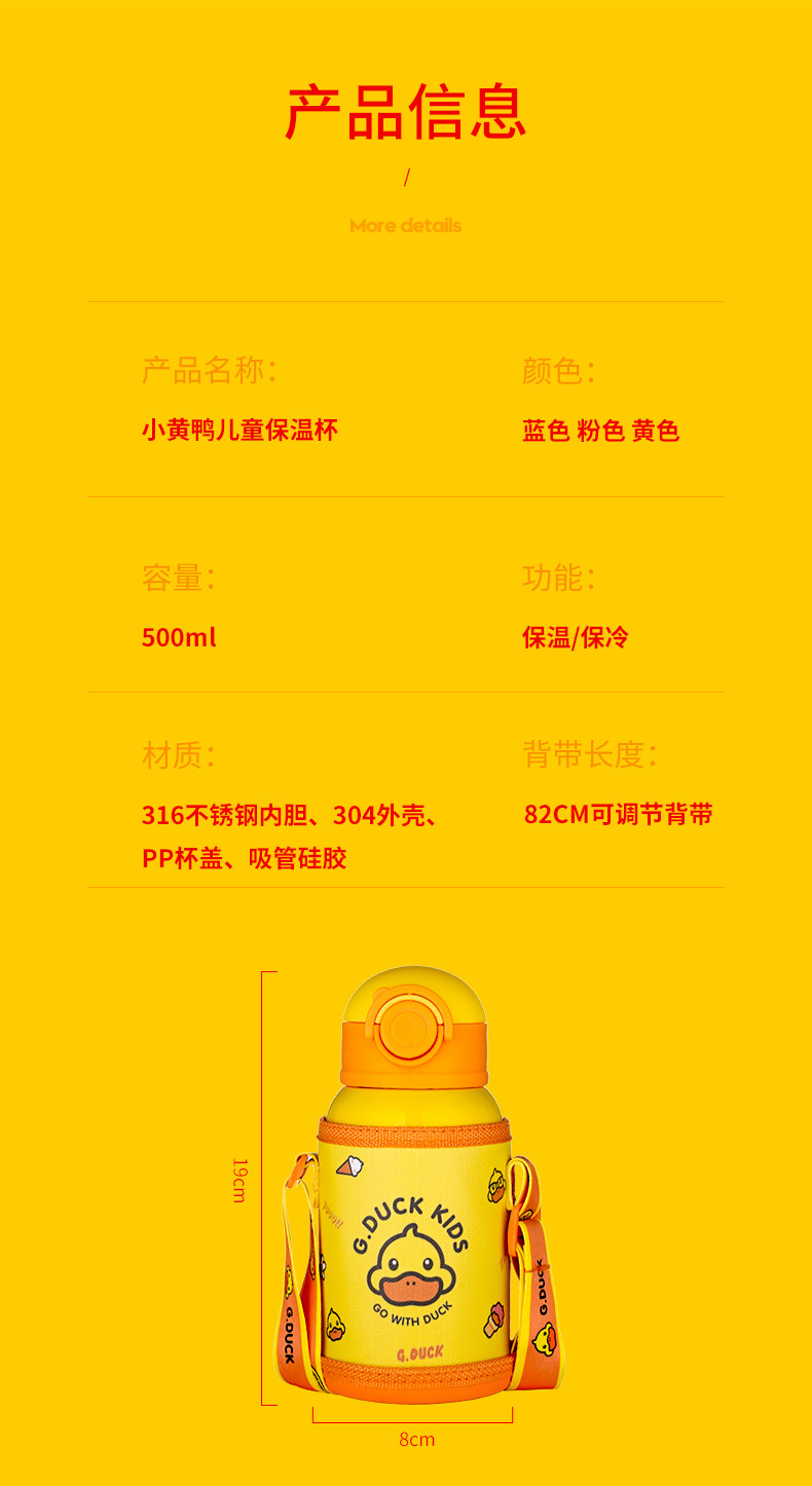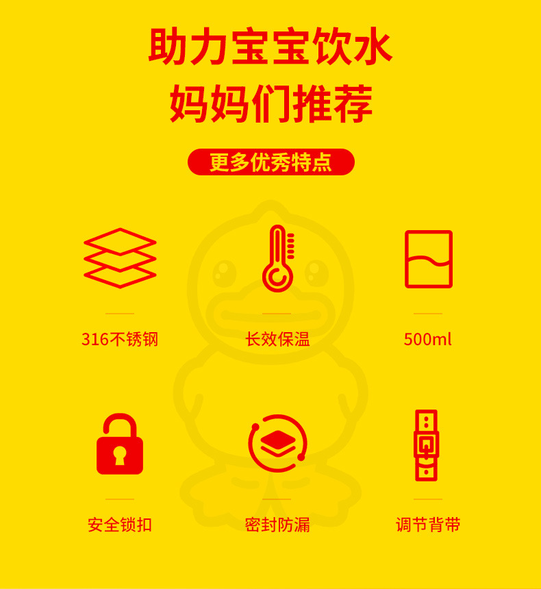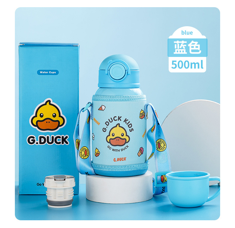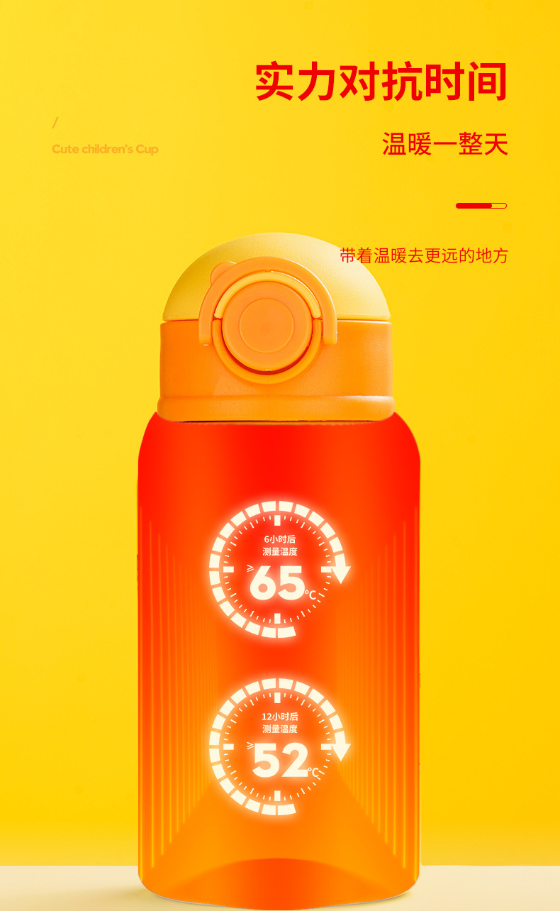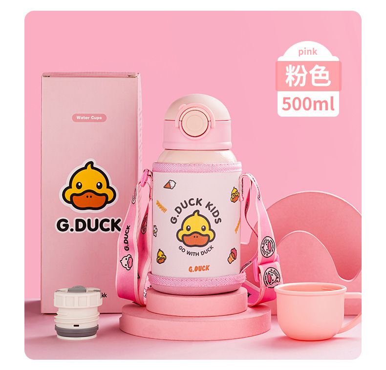 작은 노란 오리 어린이 보온병, 식품 등급 316 학생용 빨대 물컵, 학교용 컵, 휴대용 물병, 316 스테인리스 스틸스토어 가기