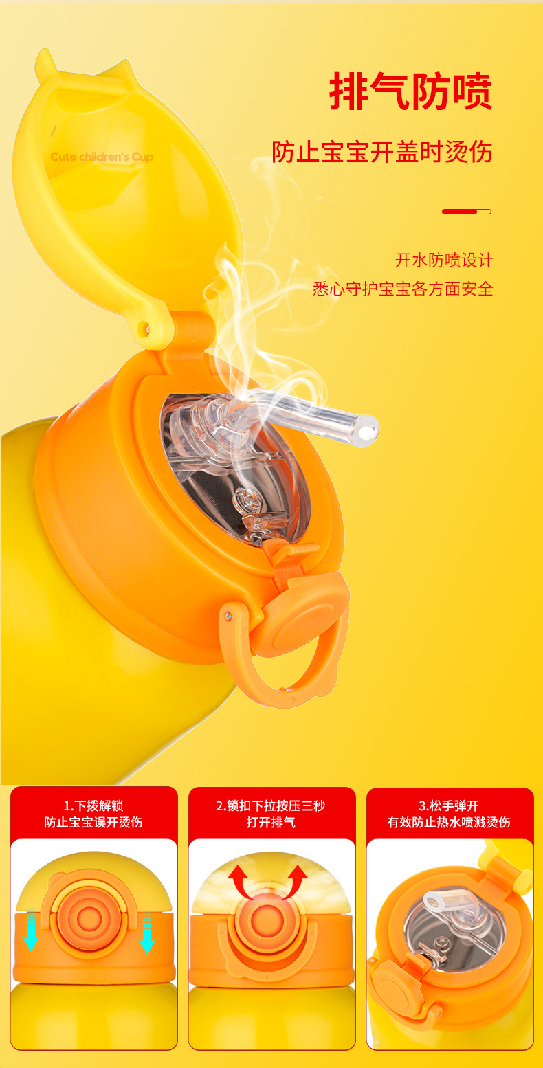 작은 노란 오리 어린이 보온병, 식품 등급 316 학생용 빨대 물컵, 학교용 컵, 휴대용 물병, 316 스테인리스 스틸