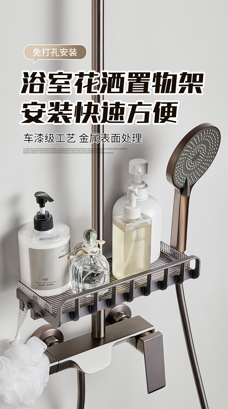 샤워 화장실 보관 랙 욕실 화장실 리프트로드 세면대 샤워 젤 벽 보관 선반 펀치 프리스토어 가기