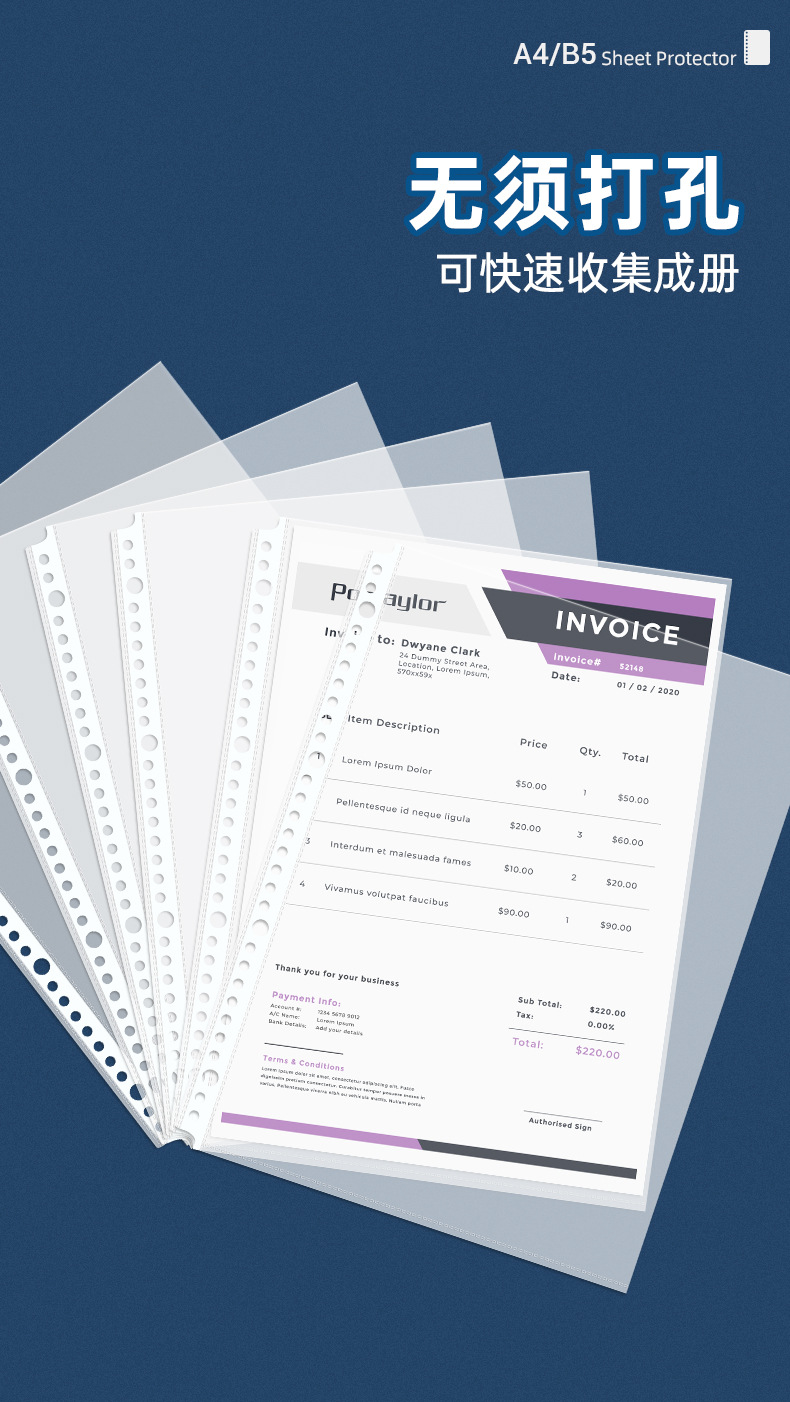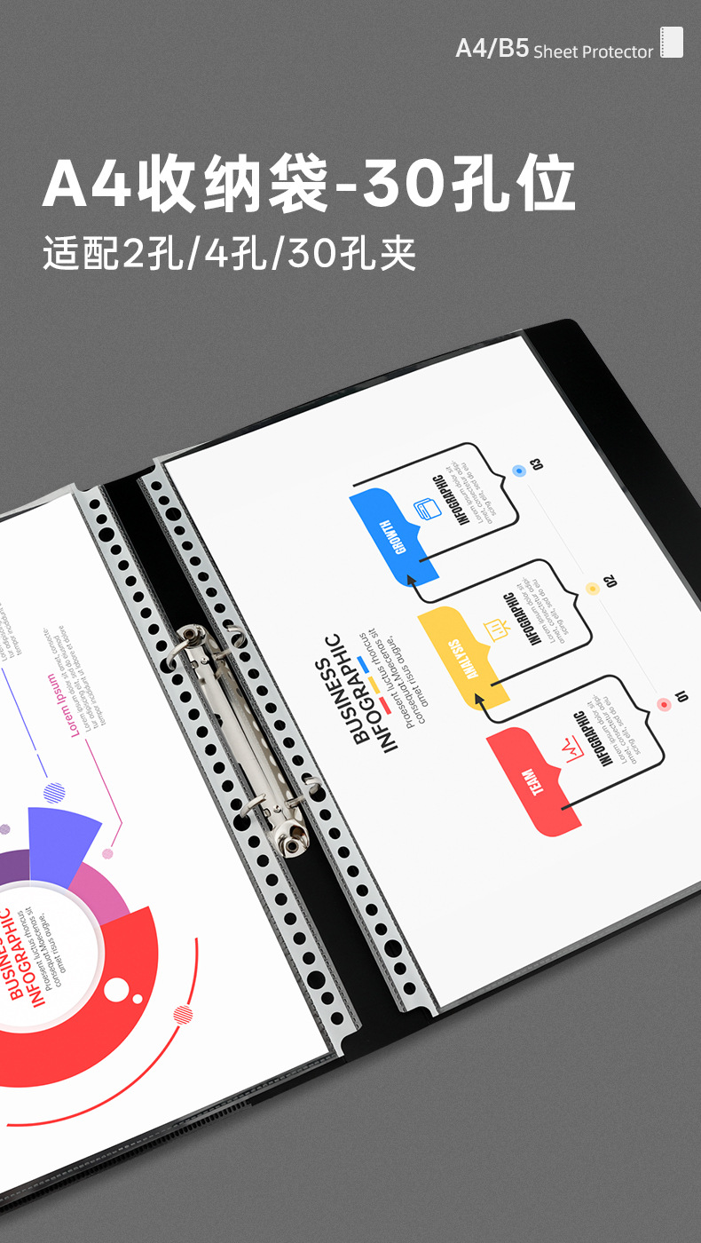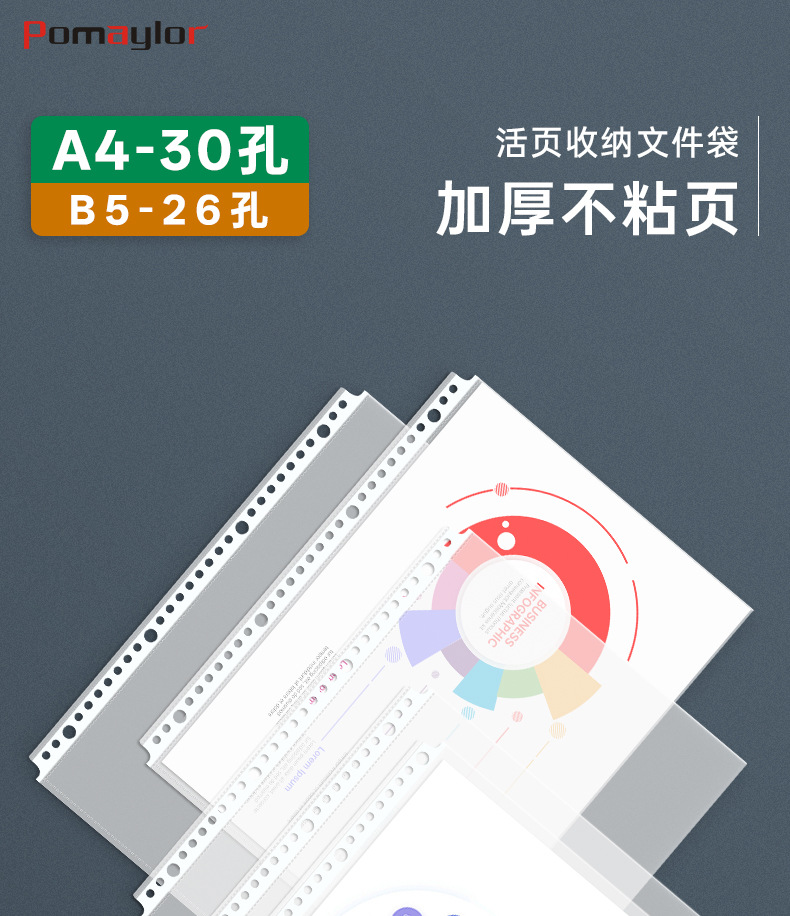 30 구멍 느슨한 잎 저장 가방 a4 문서 보호 가방 b5 플라스틱 투명 문서 가방 26 구멍 구멍이 뚫린 삽입 가방 내부 페이지스토어 가기