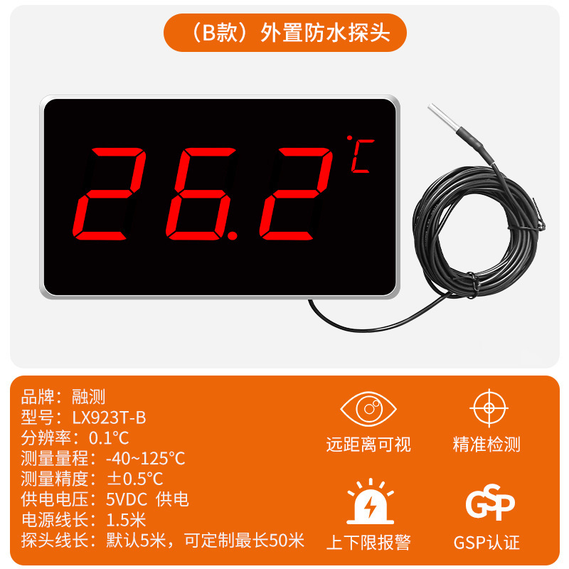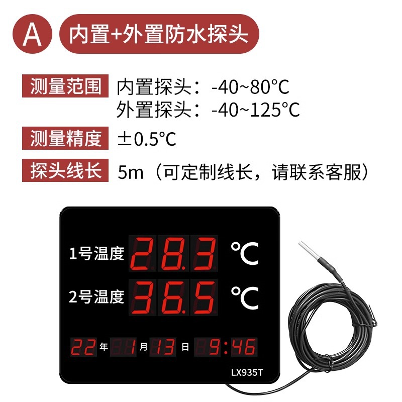 융합측정 산업용 방수 프로브 온도계 실내 수영장 사우나 고정밀 이중 온도 수온계