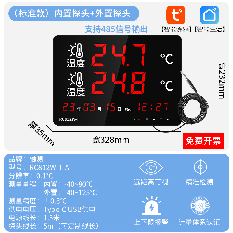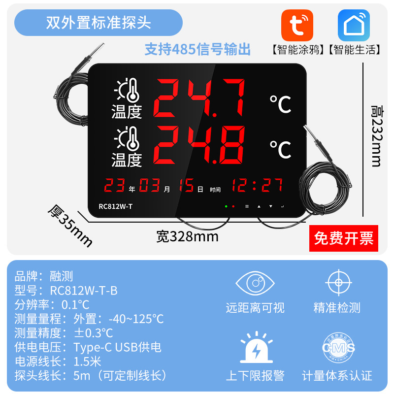 융합측정 산업용 방수 프로브 온도계 실내 수영장 사우나 고정밀 이중 온도 수온계스토어 가기