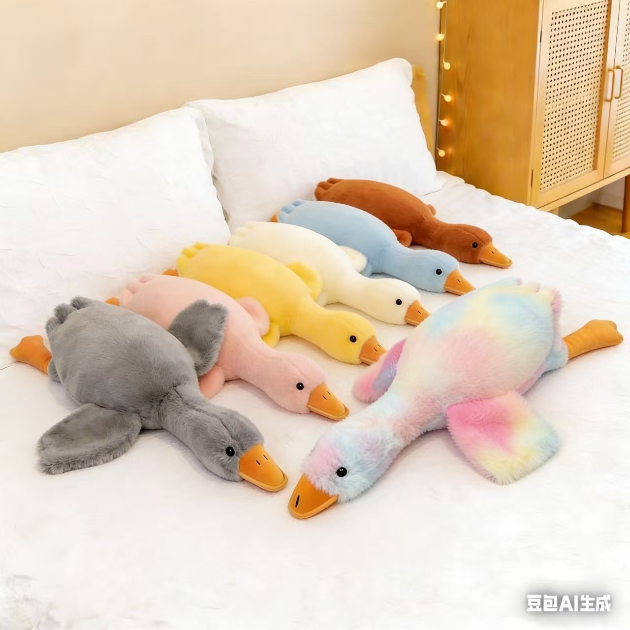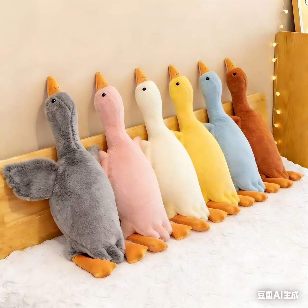 다채로운 큰 흰색 거위 인형 컴포트 베개 사이버 축하 인형 장난감 잠자는 선물 큰 거위 누워 누워 소녀 수면 누워