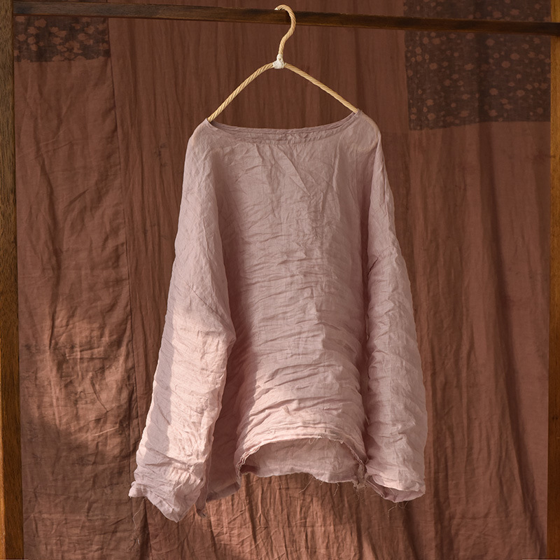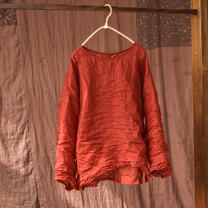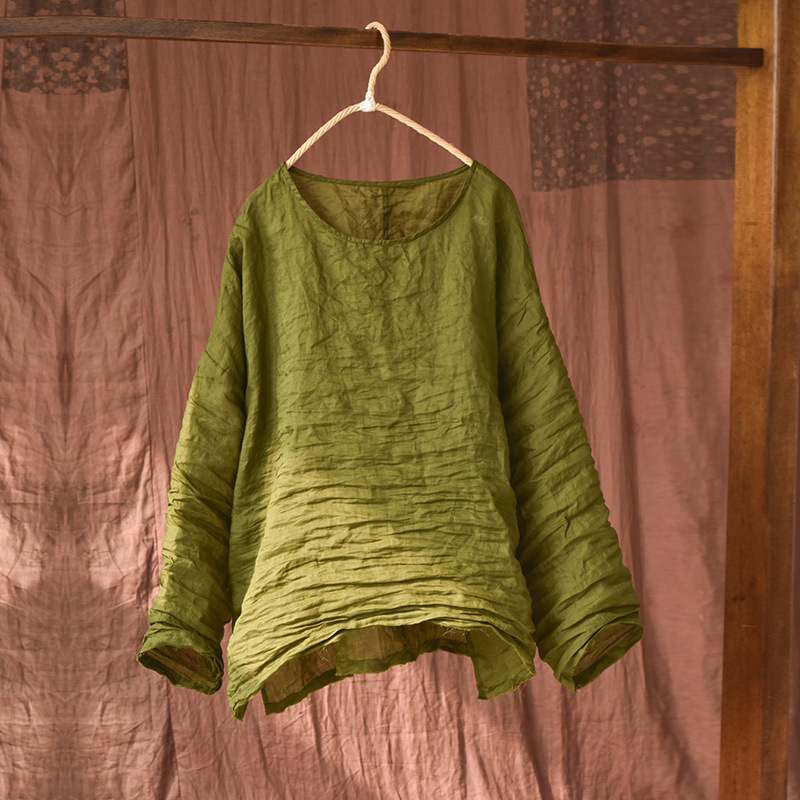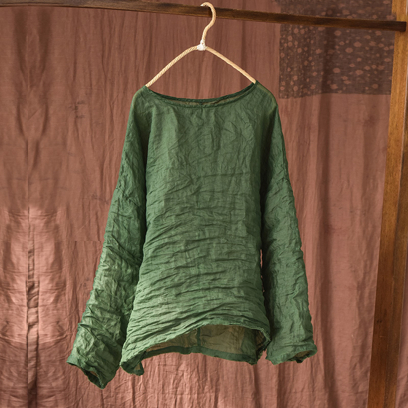 봄과 여름 4061 라운드 넥 터틀넥 풀오버 셔츠 경량 라미 하이 스플릿 느슨한 예술적 여성 셔츠 탑
