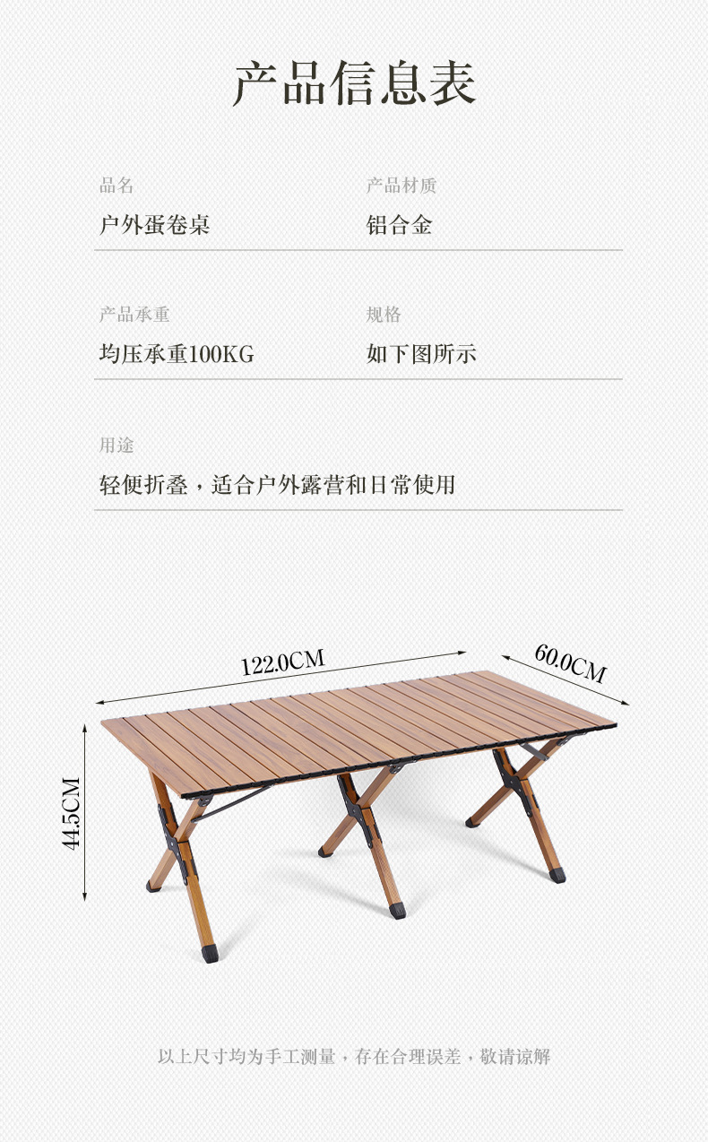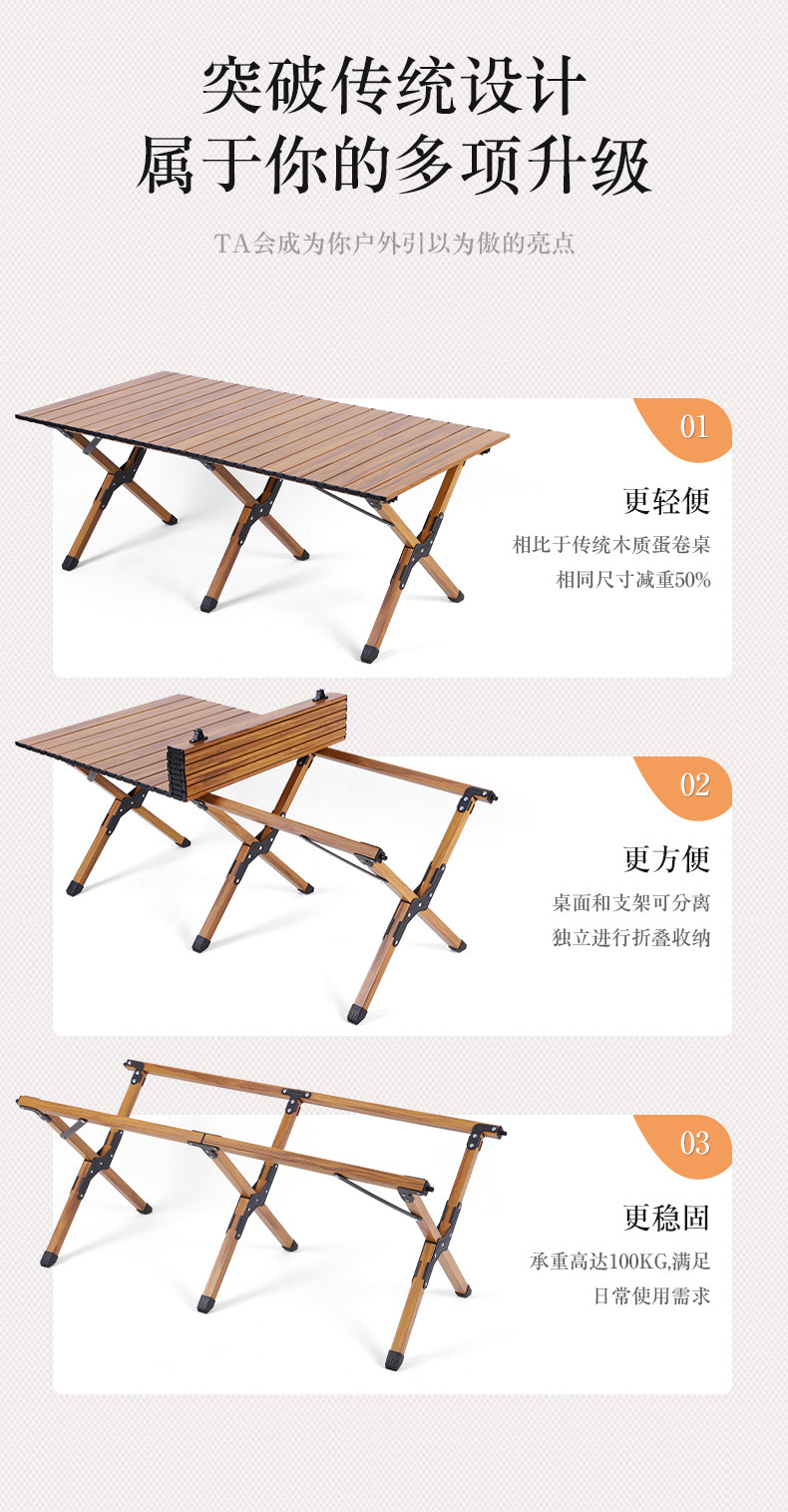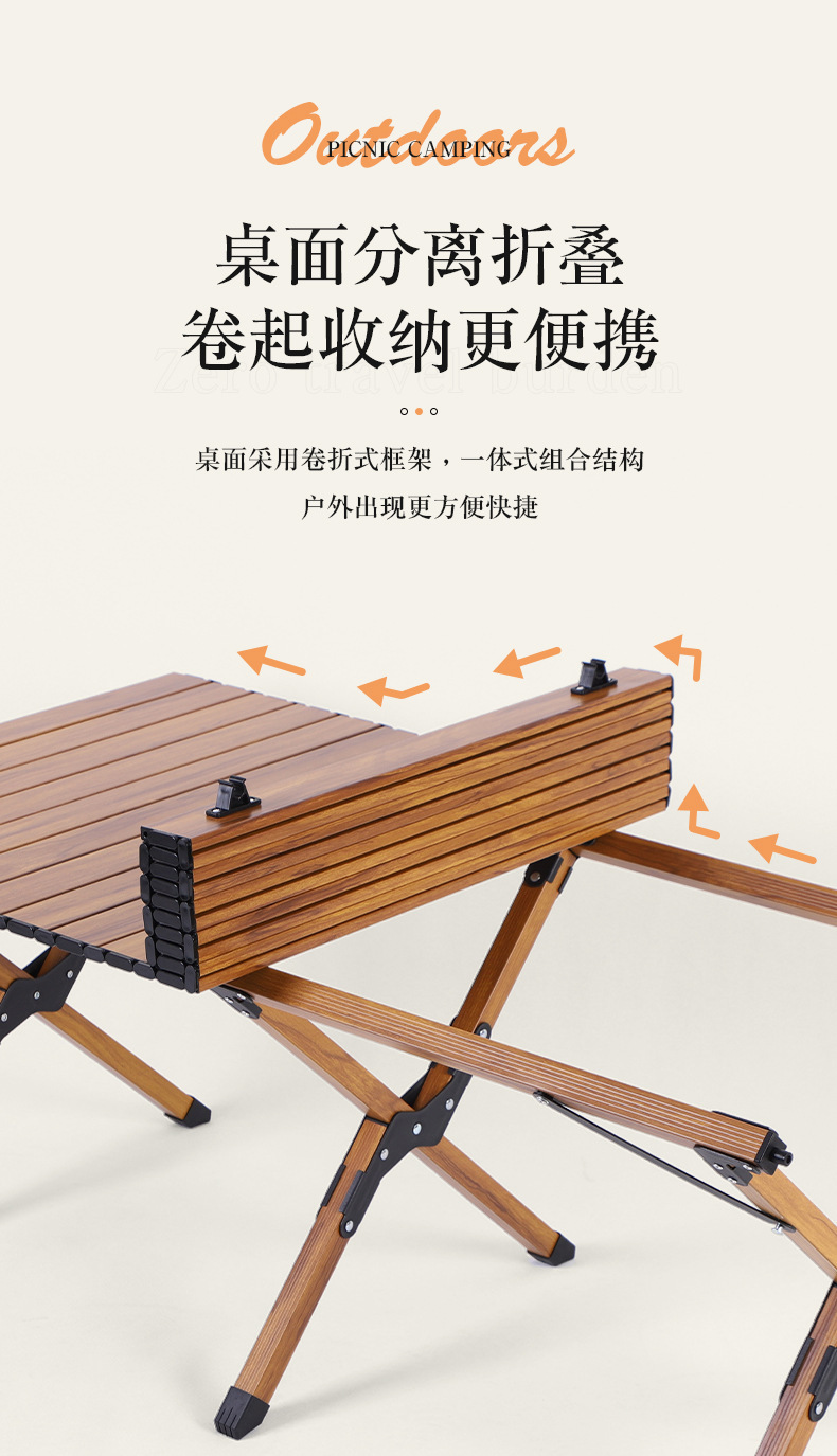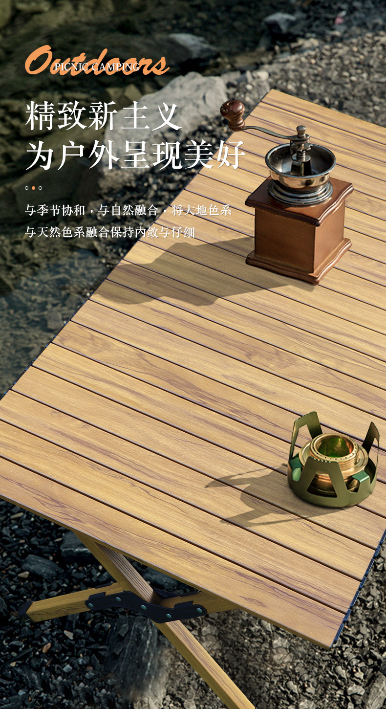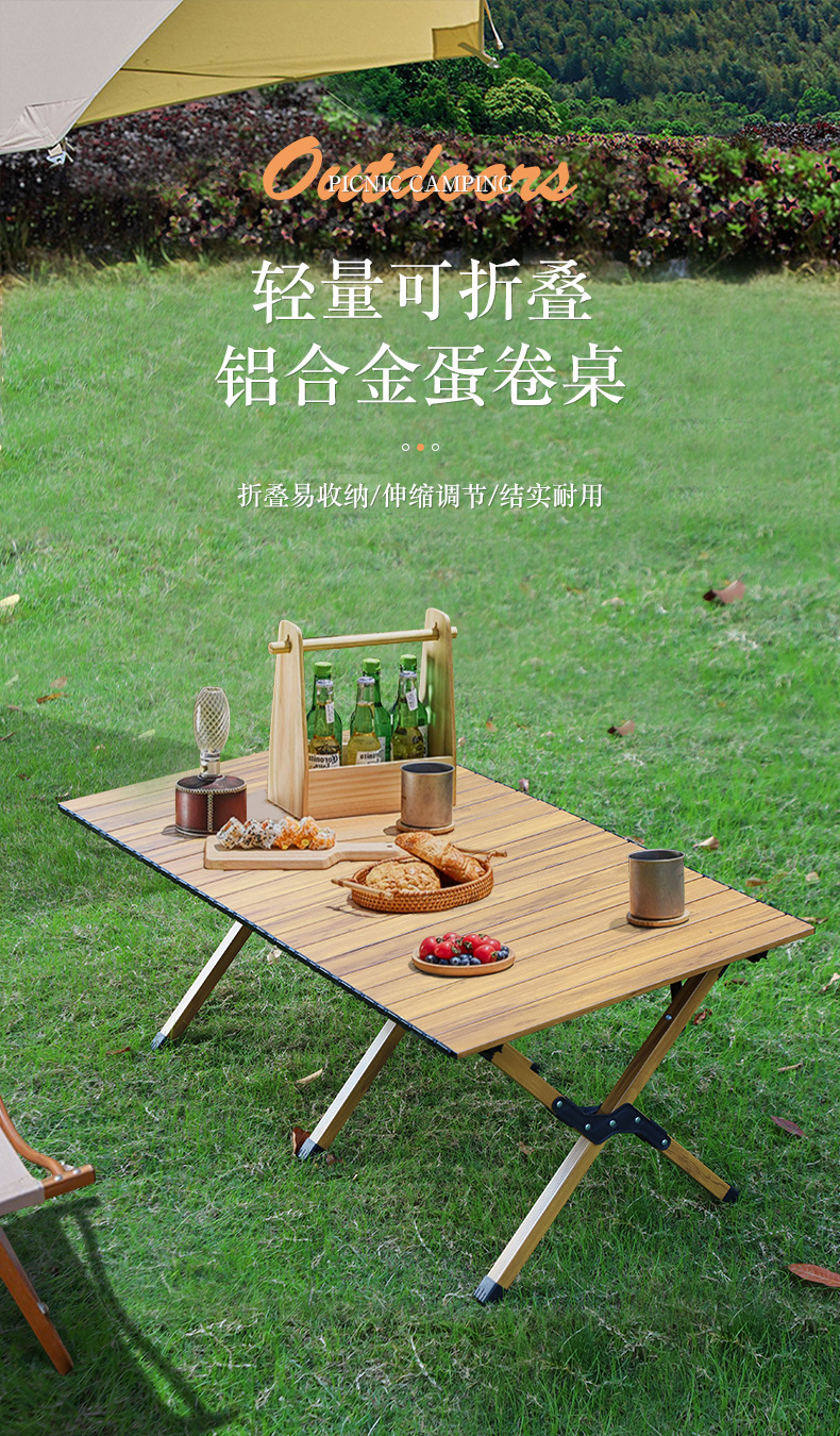 휴대용 캠핑 피크닉 달걀 롤 테이블 아마존 여행 야외 캠핑 우드 그레인 계란 롤 테이블 알루미늄 합금 접이식 테이블스토어 가기