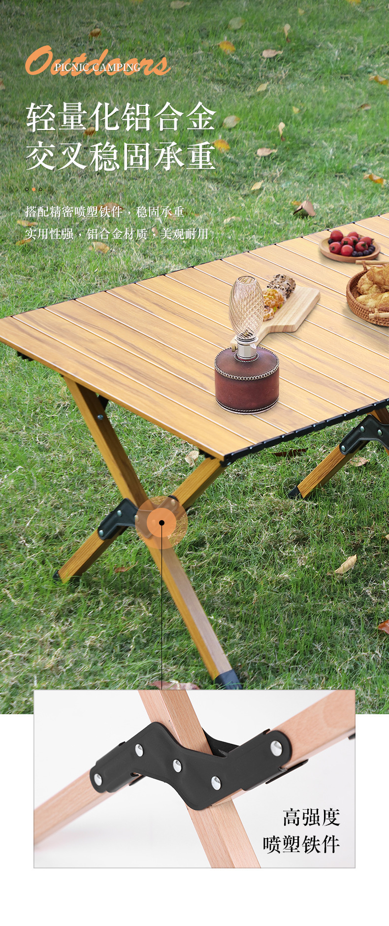 휴대용 캠핑 피크닉 달걀 롤 테이블 아마존 여행 야외 캠핑 우드 그레인 계란 롤 테이블 알루미늄 합금 접이식 테이블