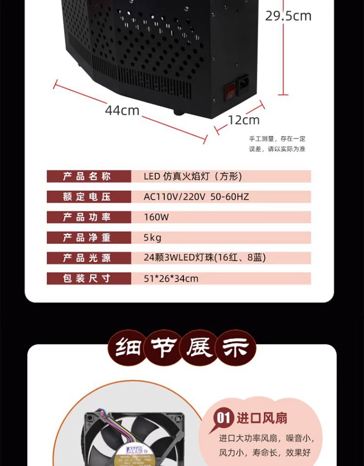 • (1.8 m) 검정 플라스틱 + 핸드 컨트롤 불꽃 램프