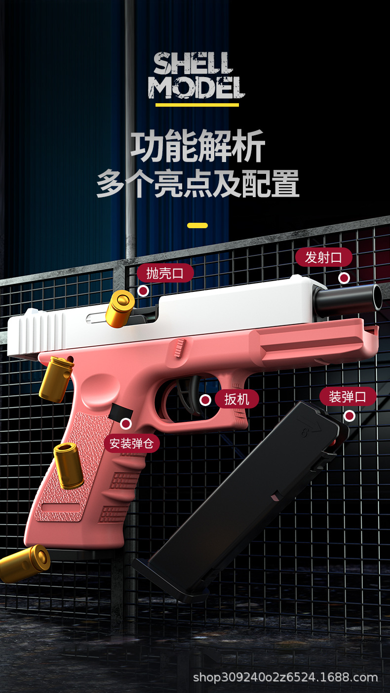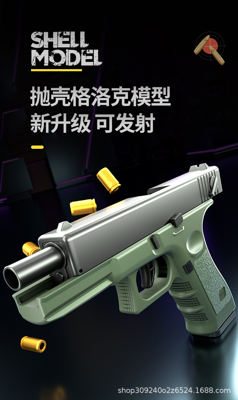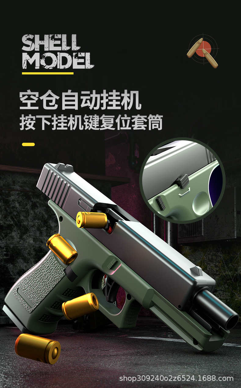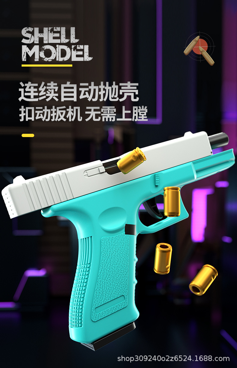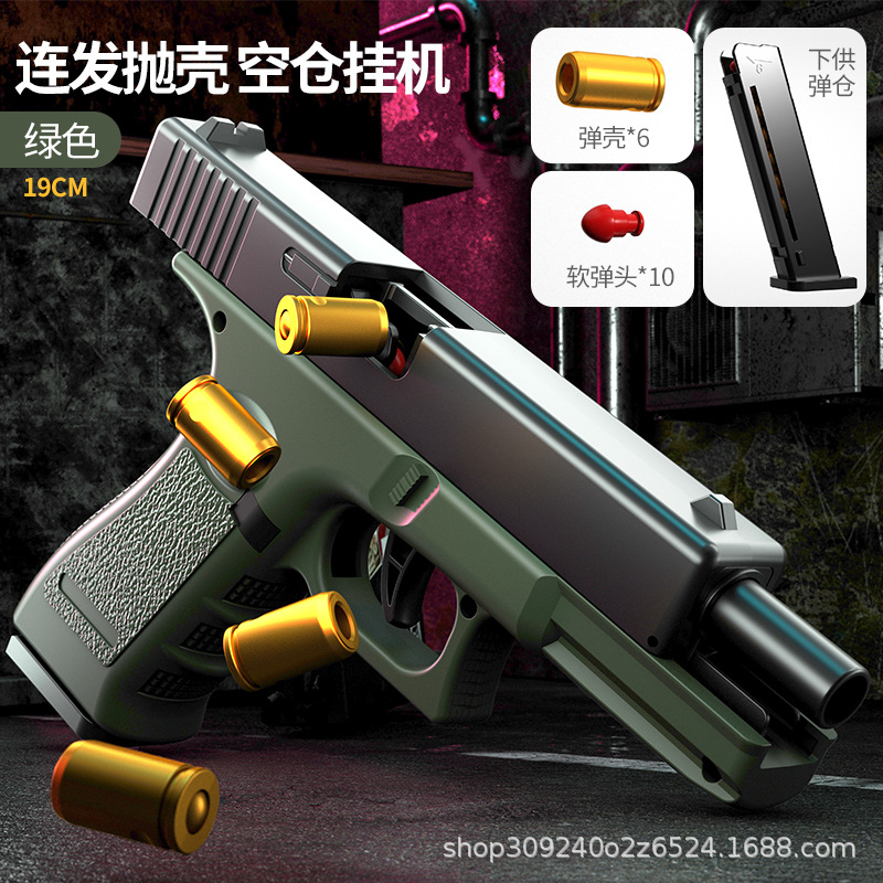 자동 로딩 쉘 던지기 연속 Glock 부드러운 총알 시뮬레이션 총 제어 교수형 치킨 어린이 소년 장난감 도매