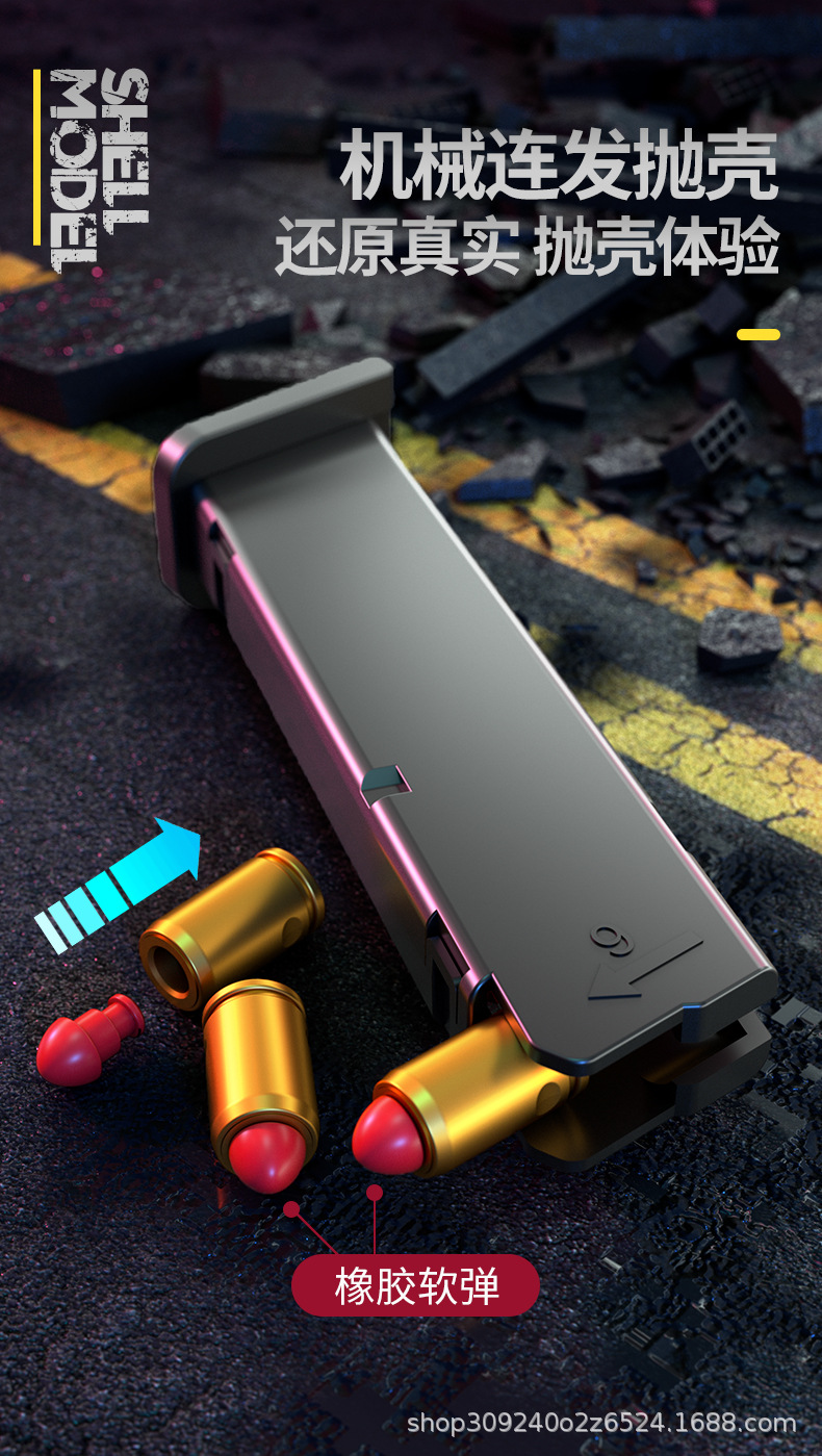 자동 로딩 쉘 던지기 연속 Glock 부드러운 총알 시뮬레이션 총 제어 교수형 치킨 어린이 소년 장난감 도매스토어 가기