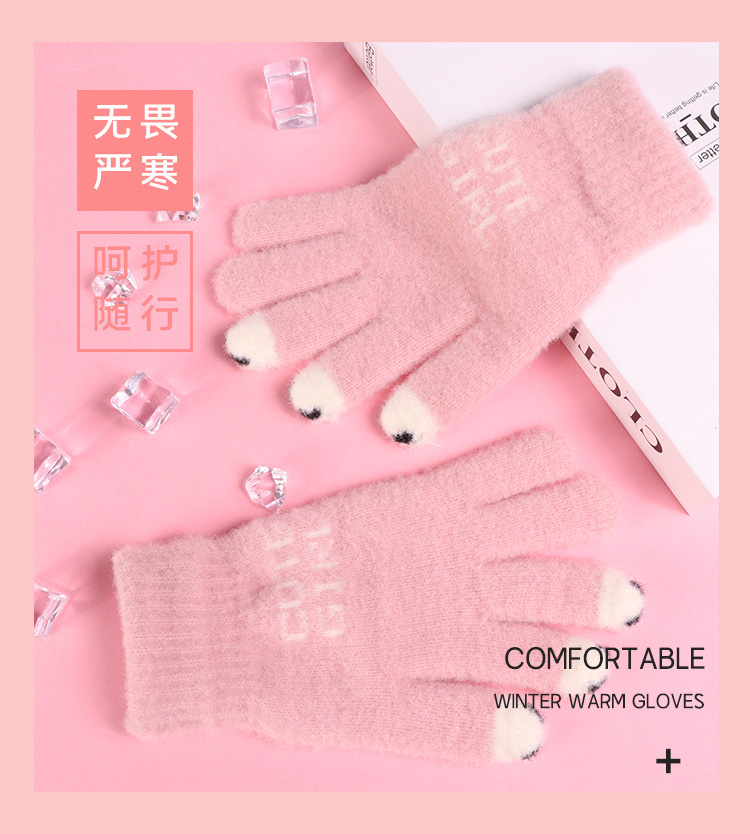 장갑 여자의 겨울 새로운 출품자 두꺼운 따뜻한 기모 귀여운 학생 방한 울 손가락 터치 스크린 장갑스토어 가기