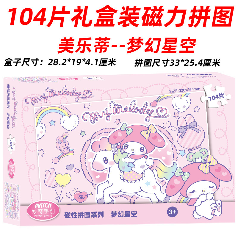 정품 라이선스 가능 하이페토】헬로키티 멜로디 시나모롤 빅이어독 어린이 자석 퍼즐