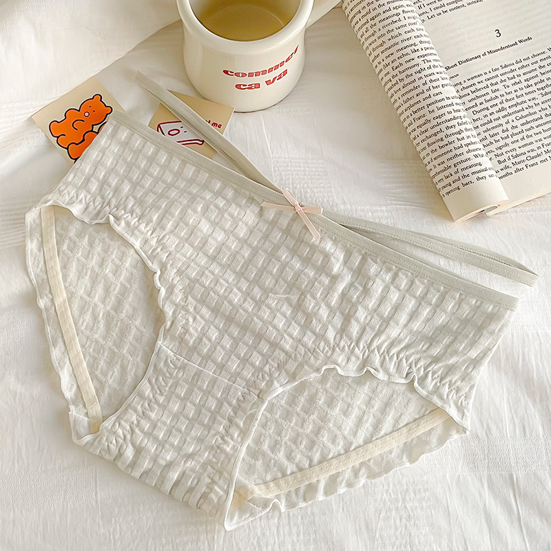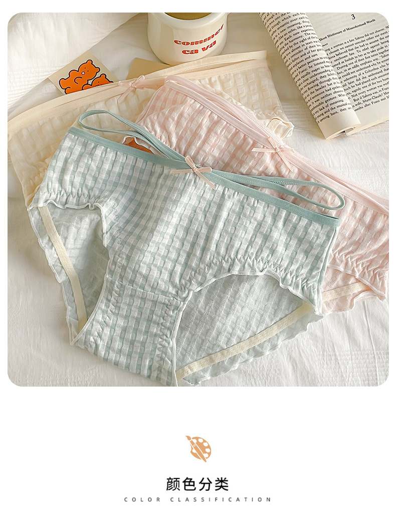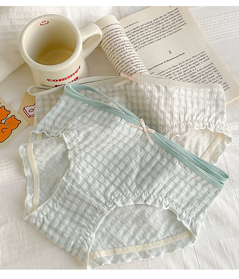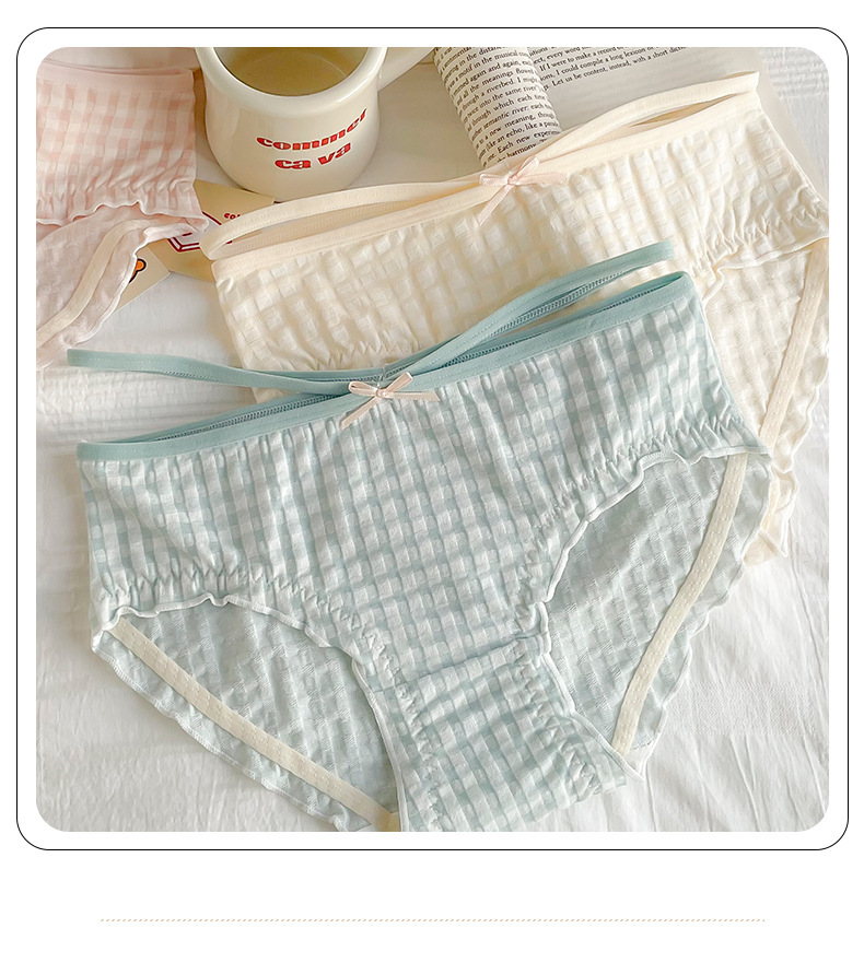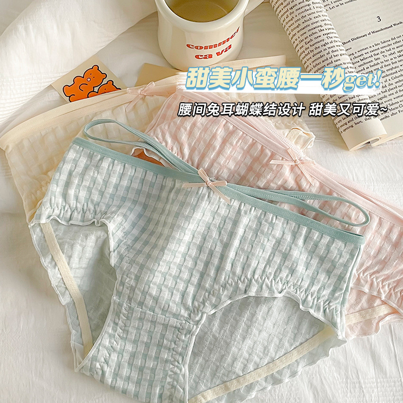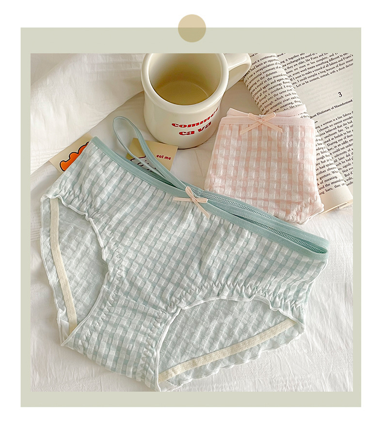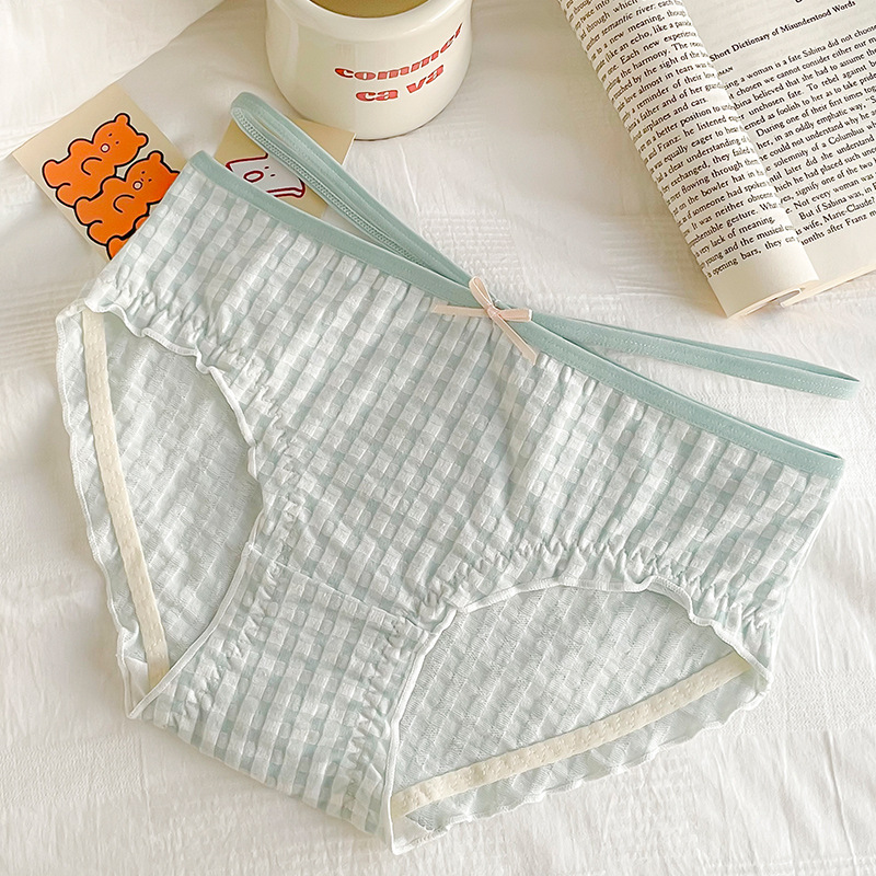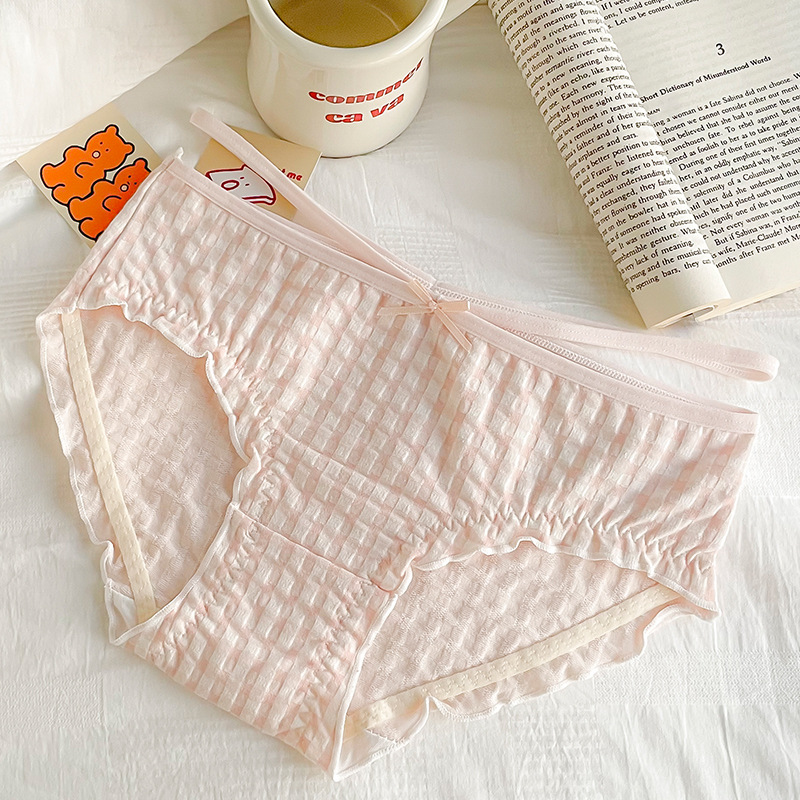 일본식 격자 무늬 면 가랑이 팬티 여성용 달콤한 원활한 통기성 미디엄 로우 웨이스트 귀여운 소녀 학생 피부 친화적 팬티