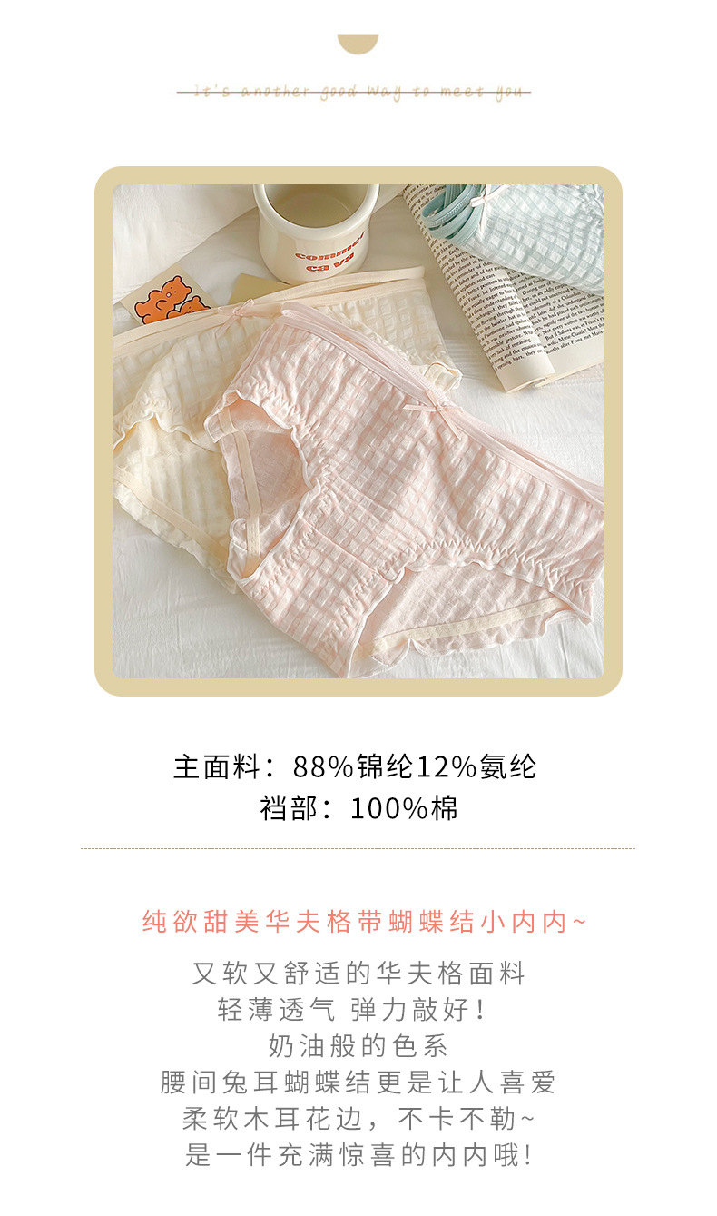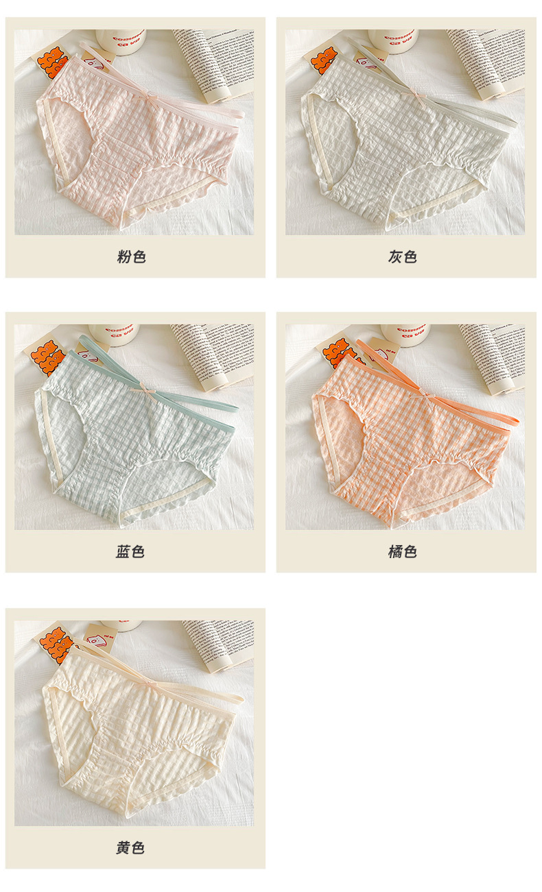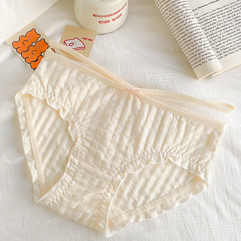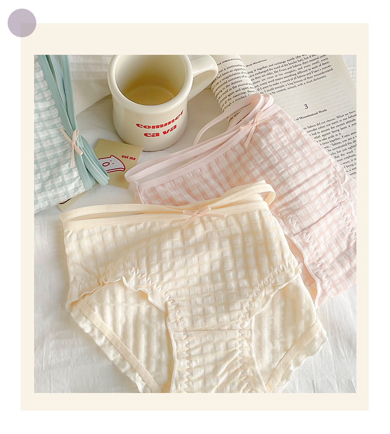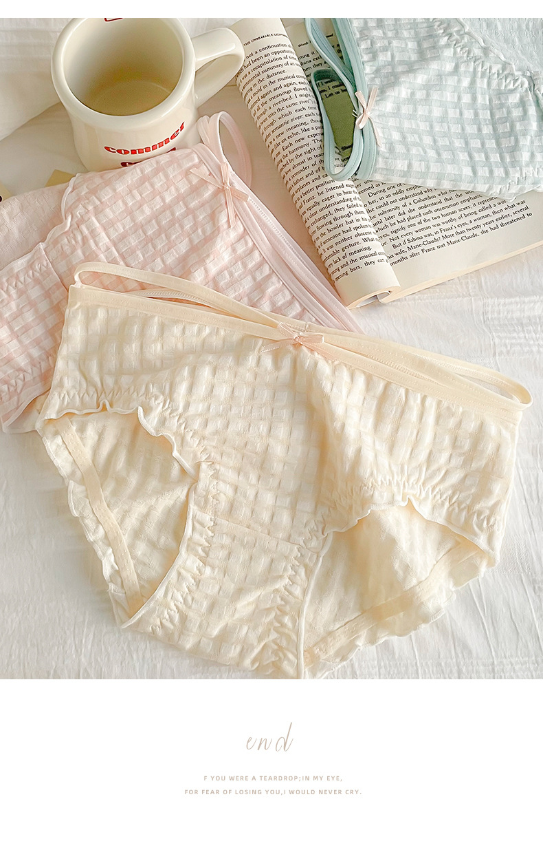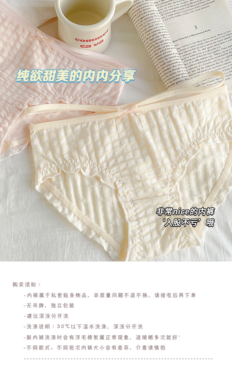 일본식 격자 무늬 면 가랑이 팬티 여성용 달콤한 원활한 통기성 미디엄 로우 웨이스트 귀여운 소녀 학생 피부 친화적 팬티