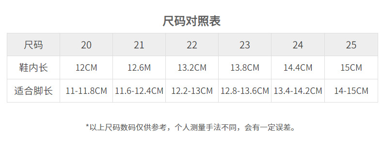 • 20 야드 (0 ~ 6 개월) 권장 발 길이 11 ~ 11.5cm