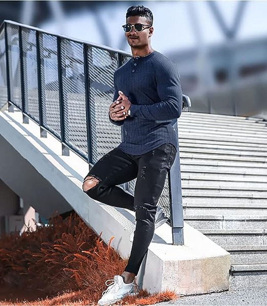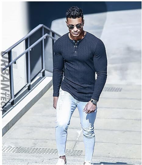 유럽과 미국의 스포츠 슬림 근육 남성용 반팔 티셔츠 대외 무역 피트니스 탄성 실 타이트 컬러 아메리칸 헨리