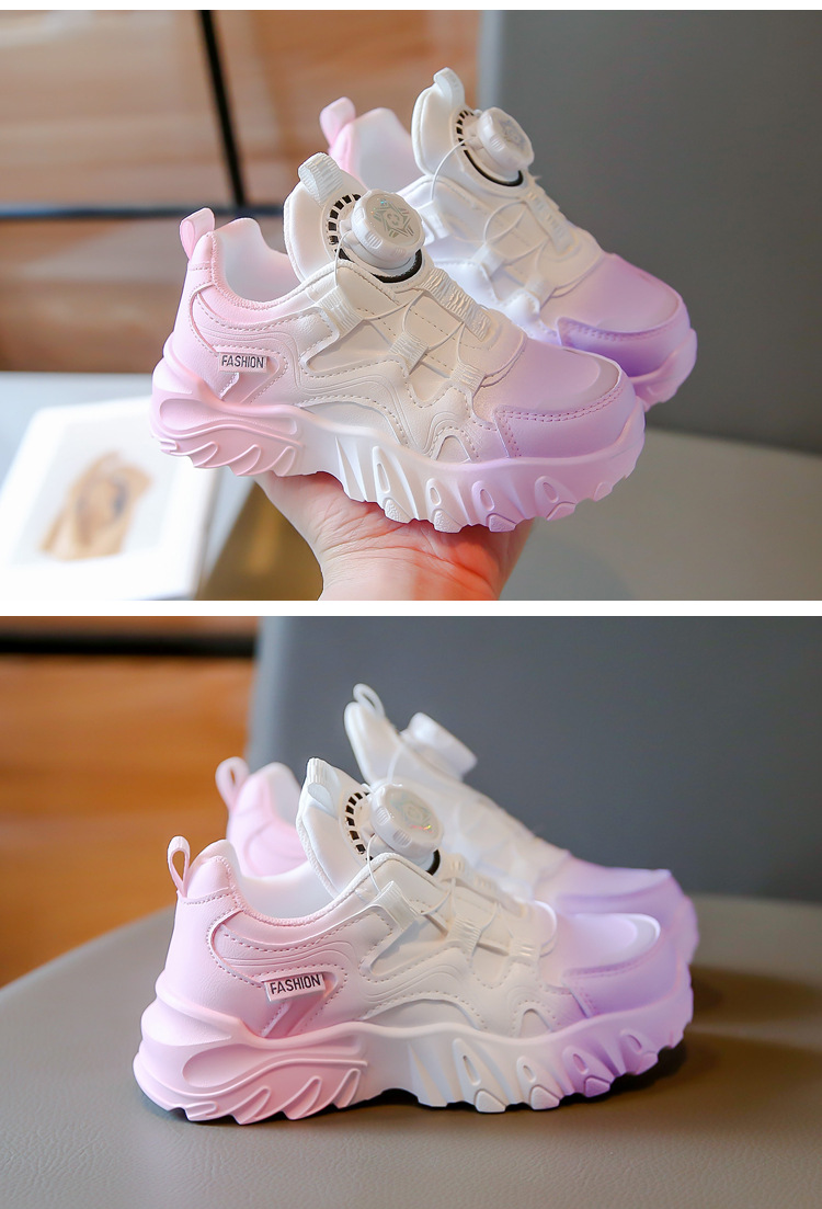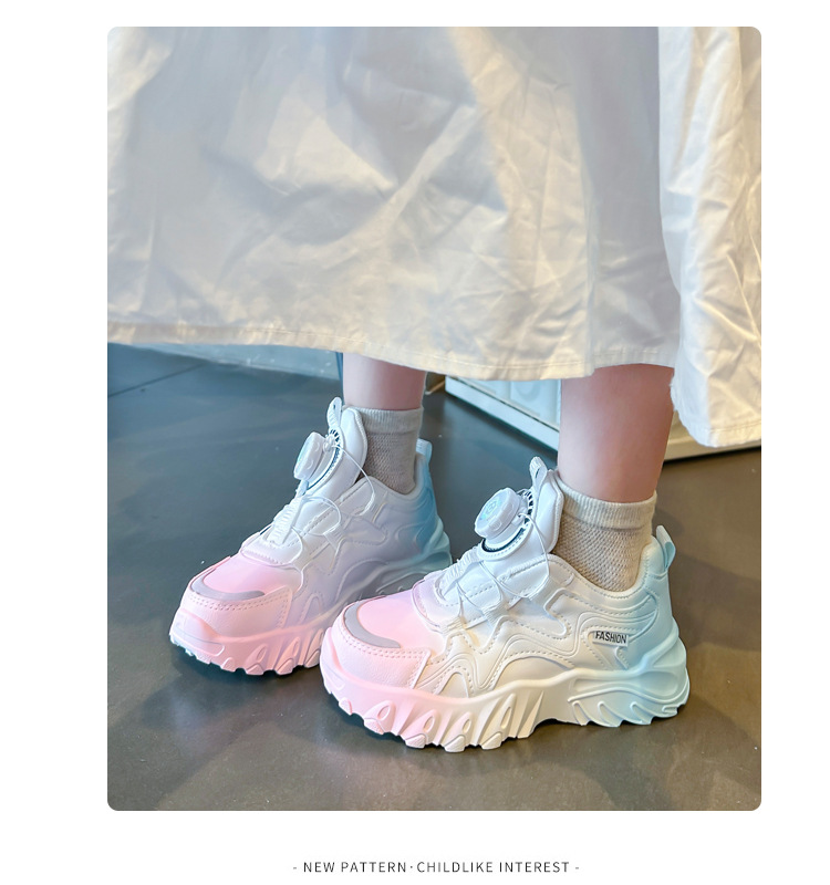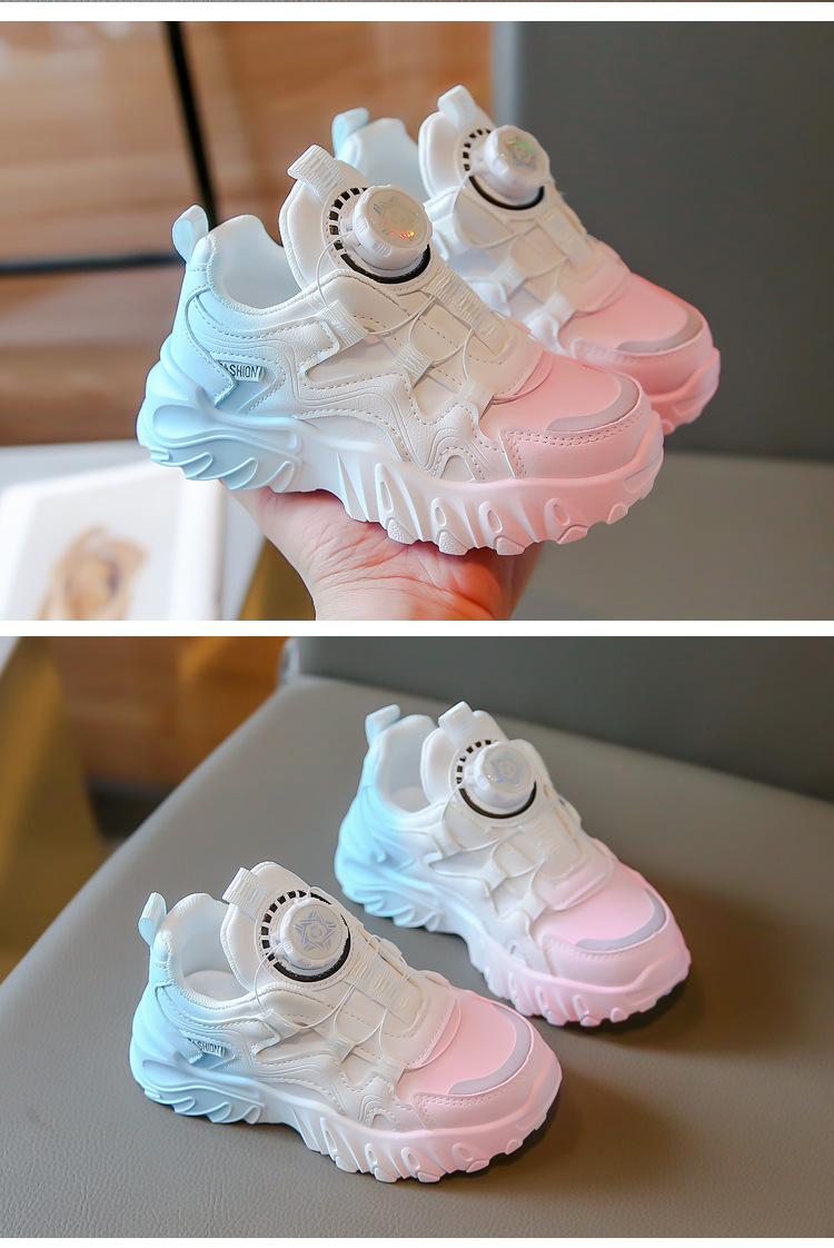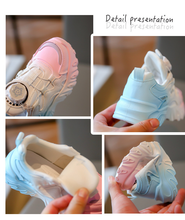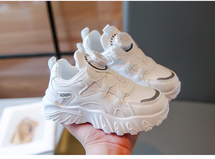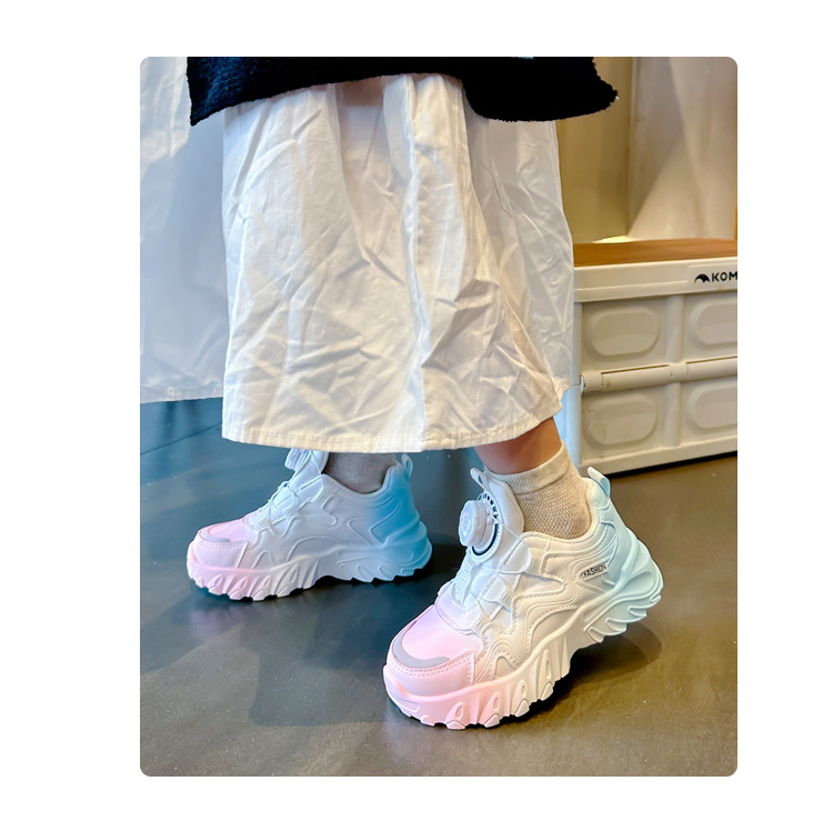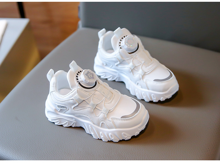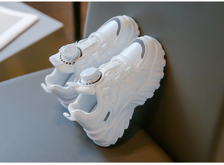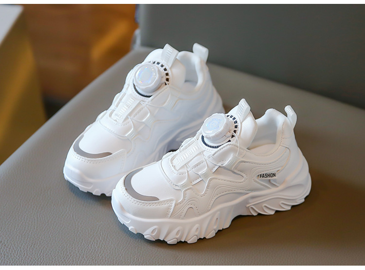 2023 운동화 소년과 소녀 인기 패션 회전 버튼 가죽 통기성 큰 어린이 아버지 신발의 한국어 버전스토어 가기