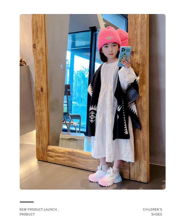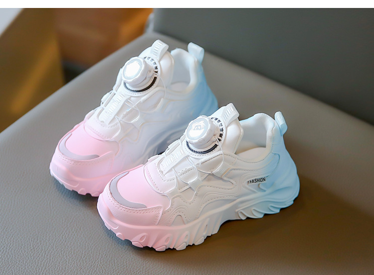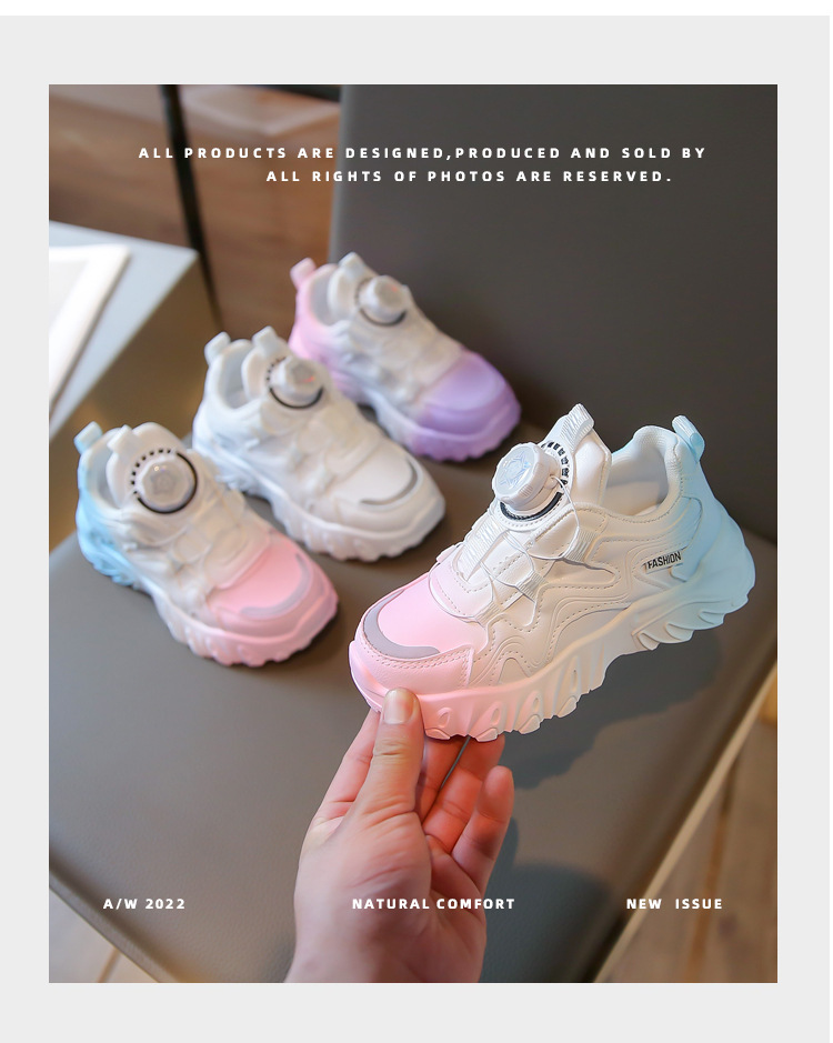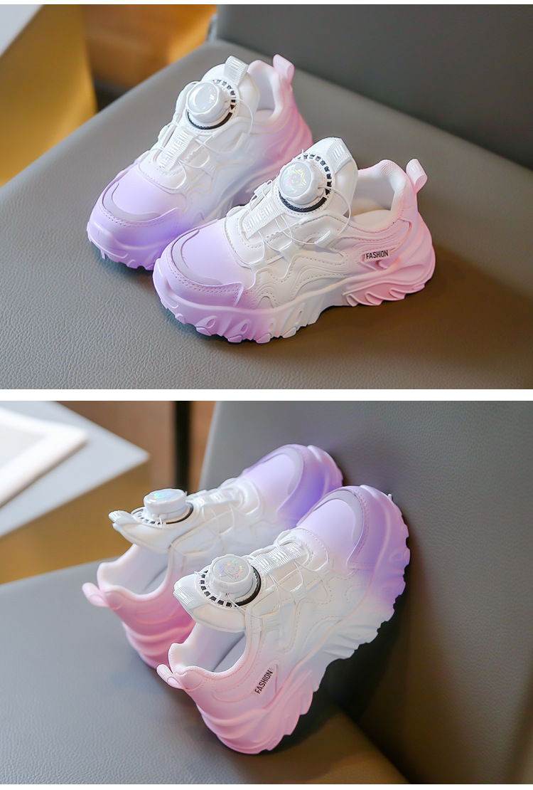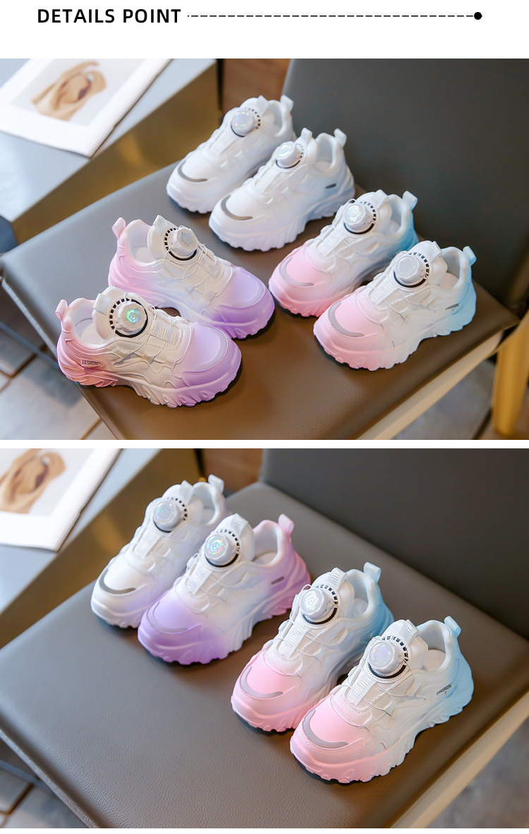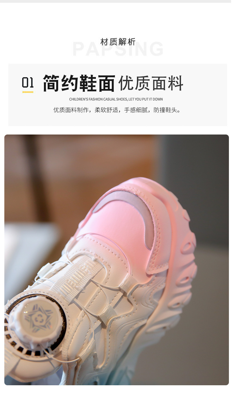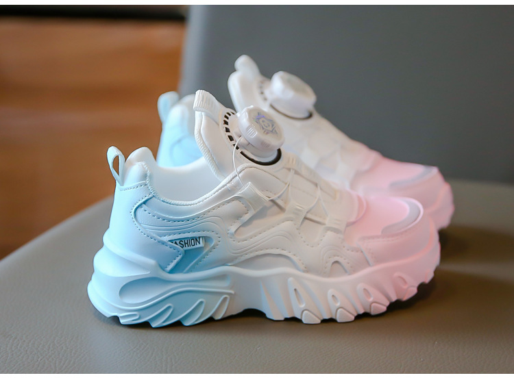 2023 운동화 소년과 소녀 인기 패션 회전 버튼 가죽 통기성 큰 어린이 아버지 신발의 한국어 버전스토어 가기