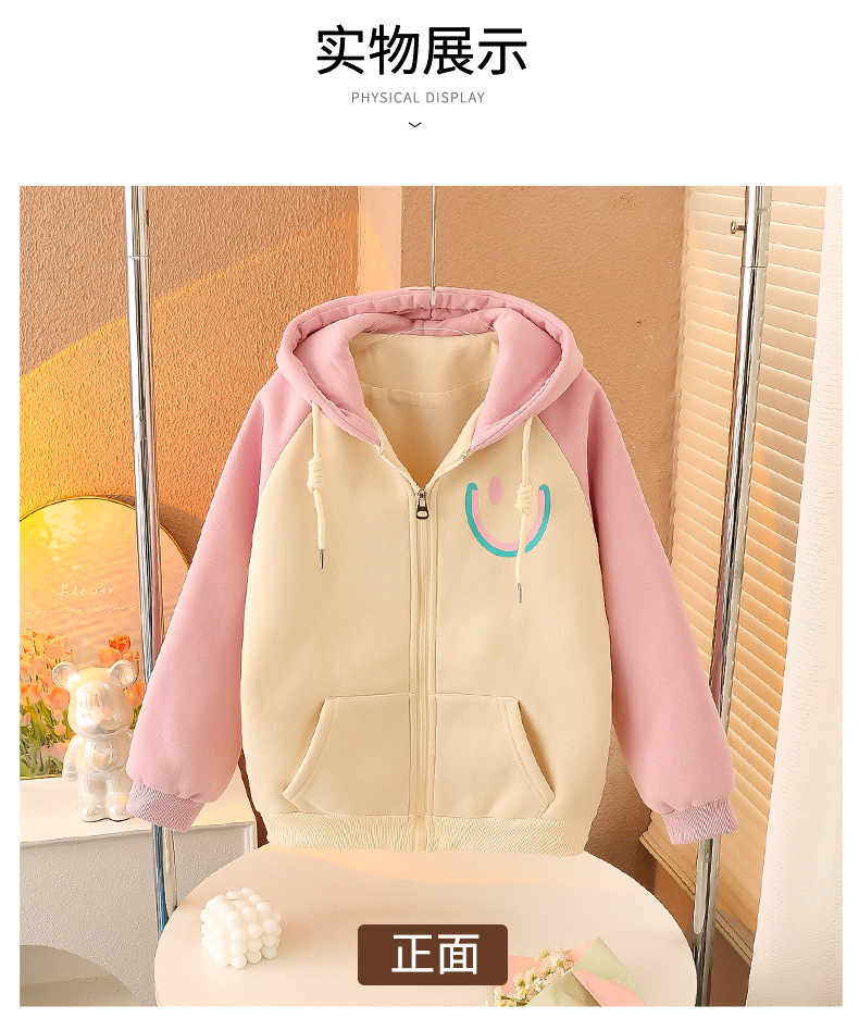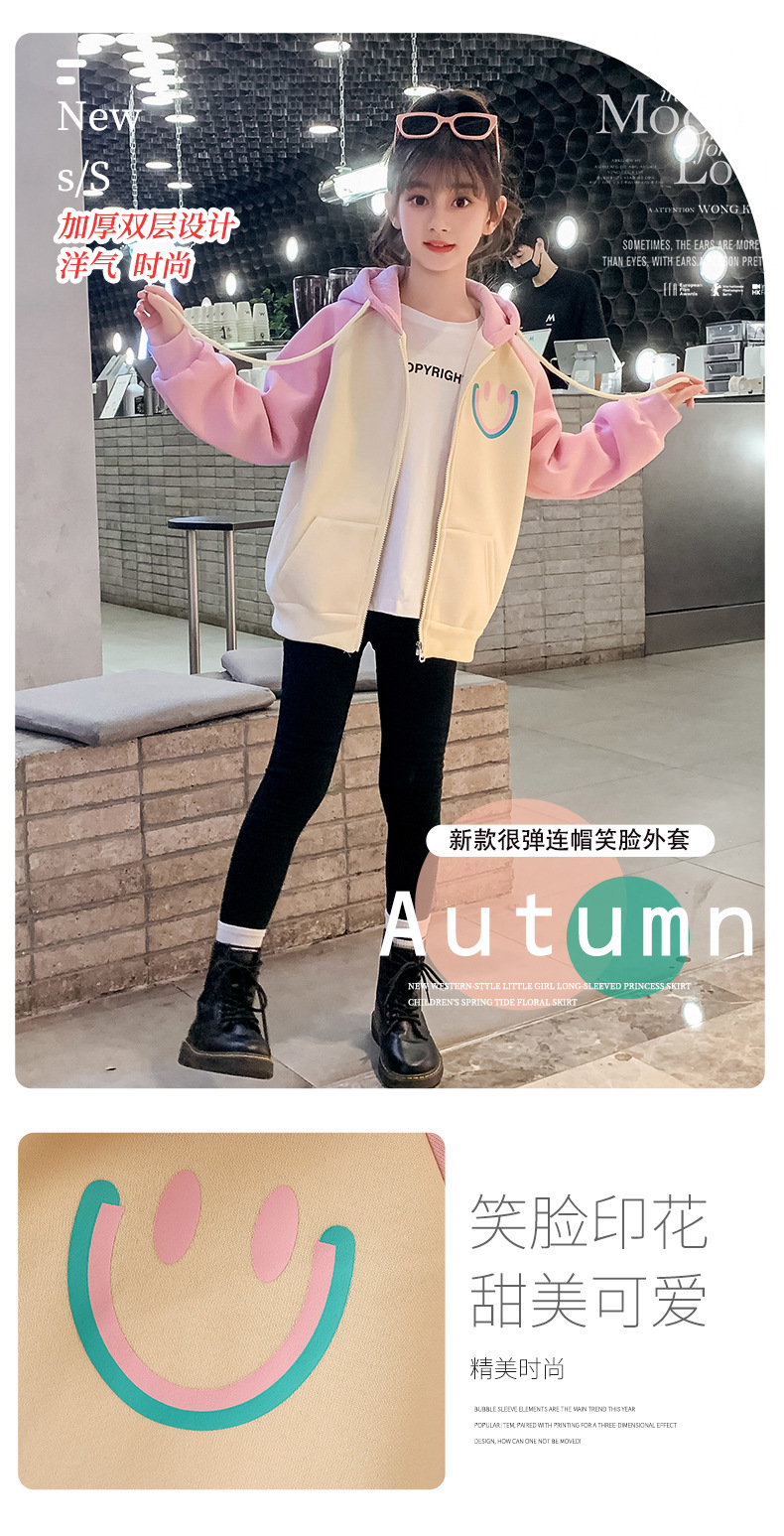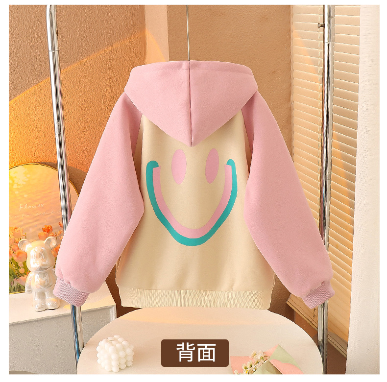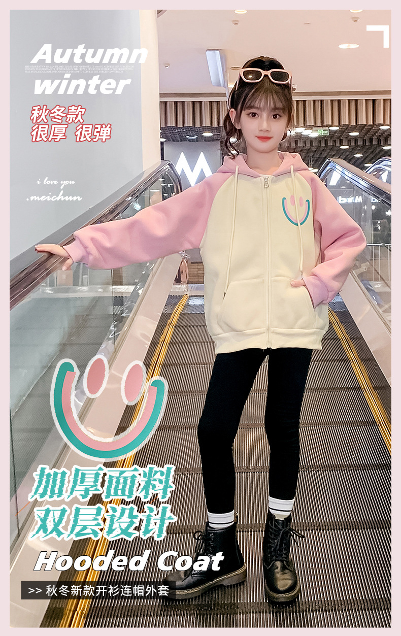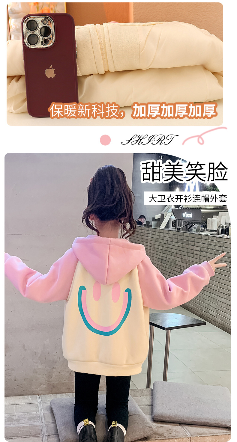 2026 가을 겨울 여아용 새 카디건 재킷 두꺼운 이중 후드 스마일리 페이스 중대형 아동 초등학생 유치원생용스토어 가기