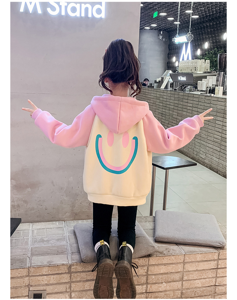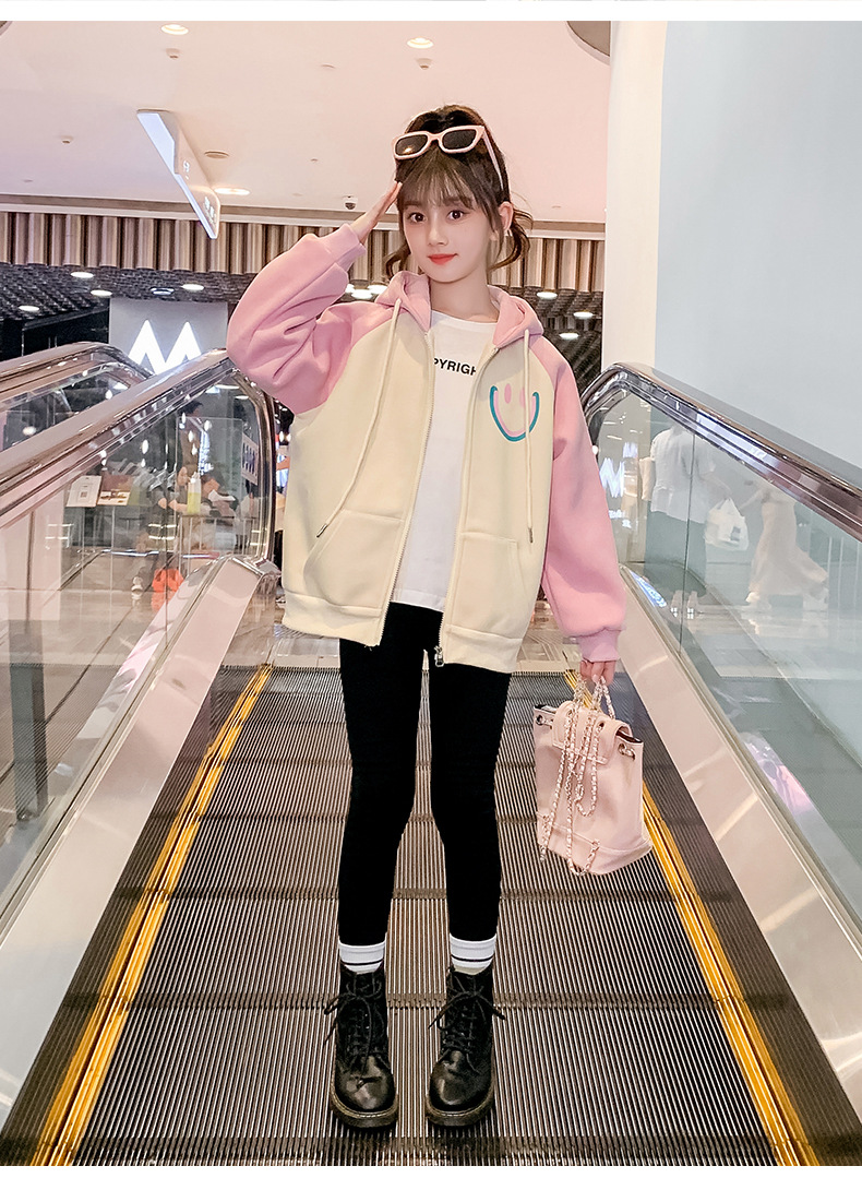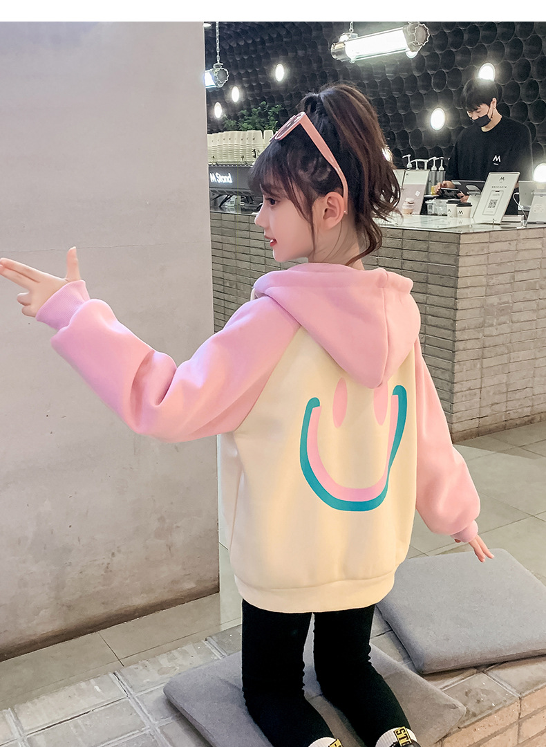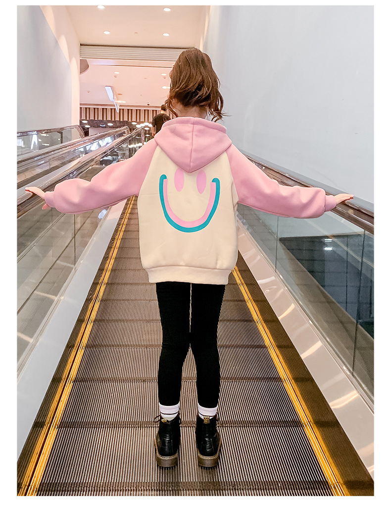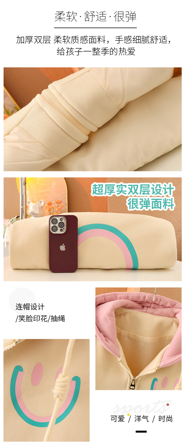 2026 가을 겨울 여아용 새 카디건 재킷 두꺼운 이중 후드 스마일리 페이스 중대형 아동 초등학생 유치원생용스토어 가기
