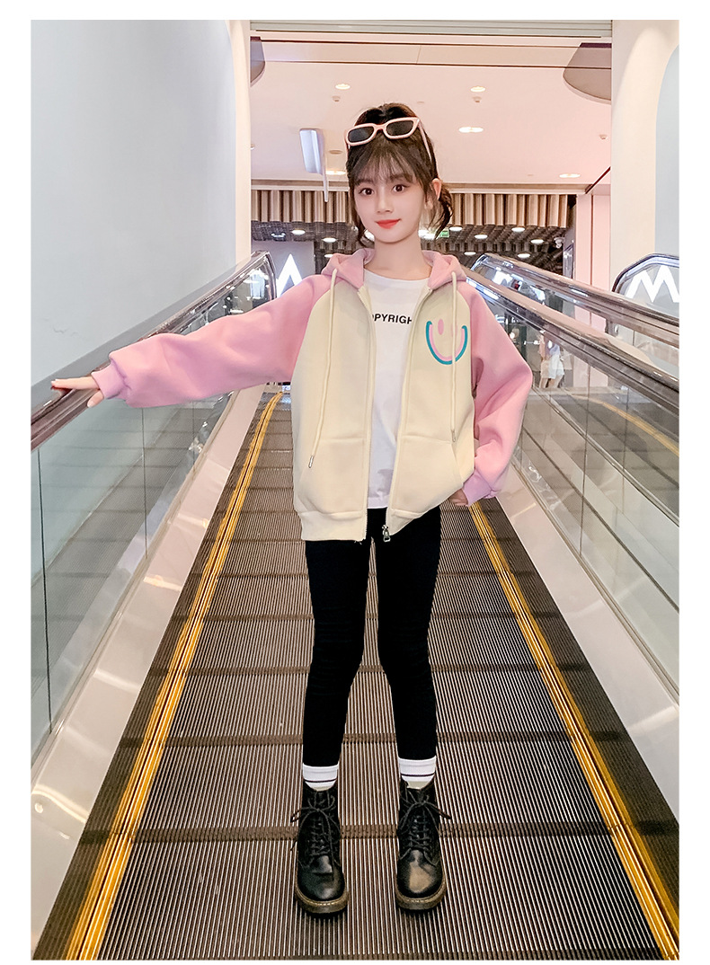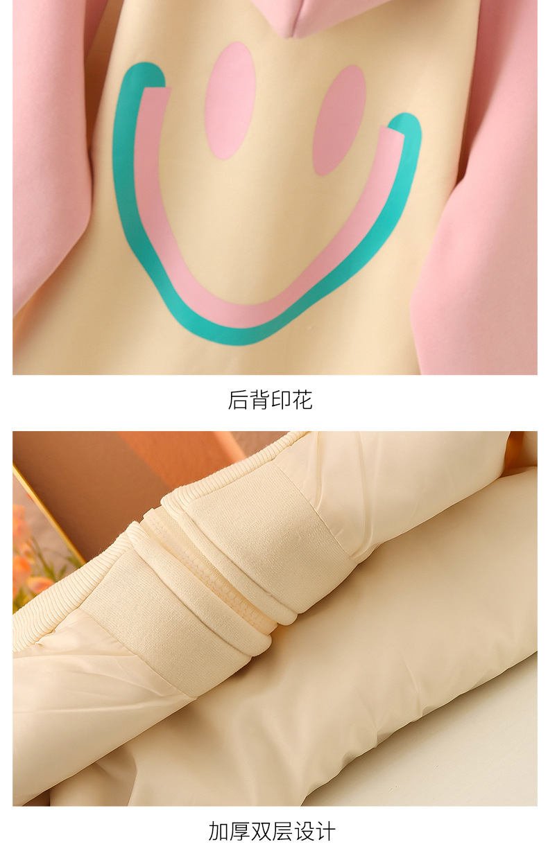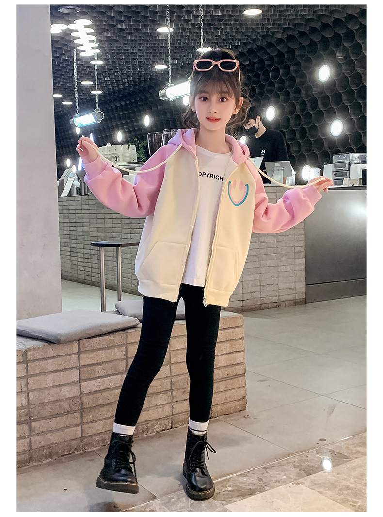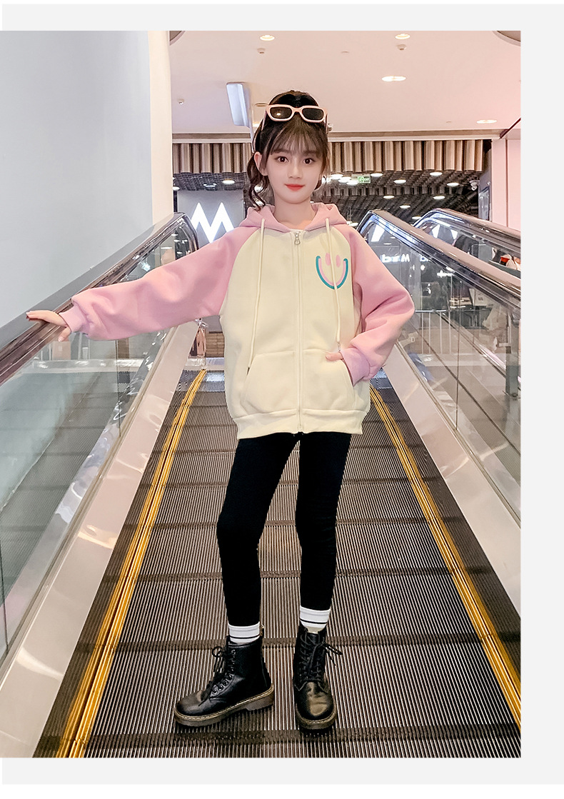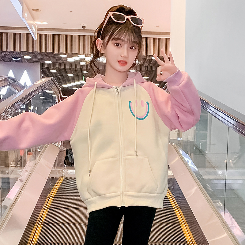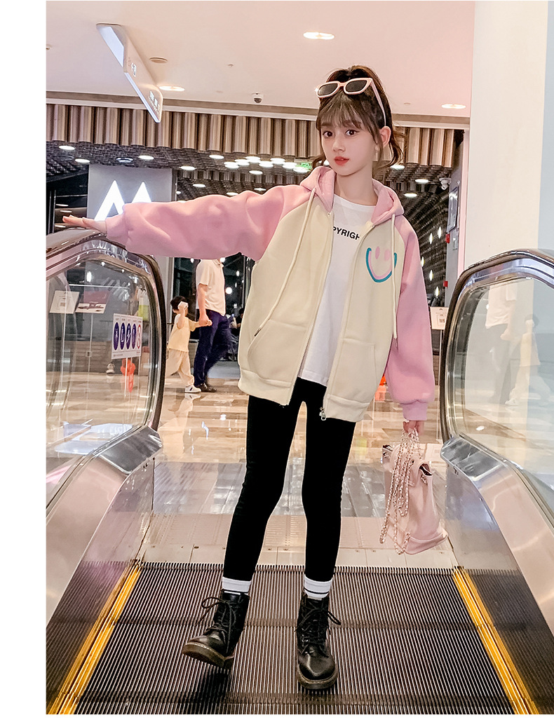 2026 가을 겨울 여아용 새 카디건 재킷 두꺼운 이중 후드 스마일리 페이스 중대형 아동 초등학생 유치원생용스토어 가기