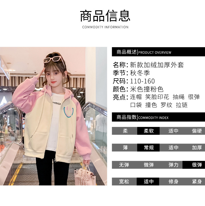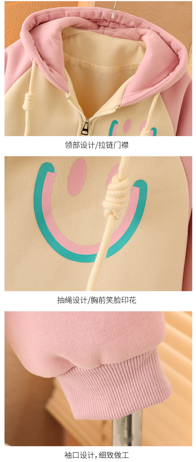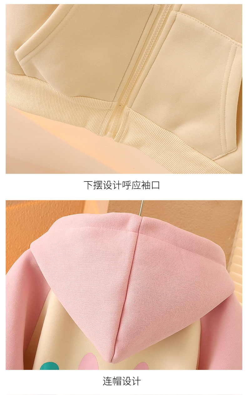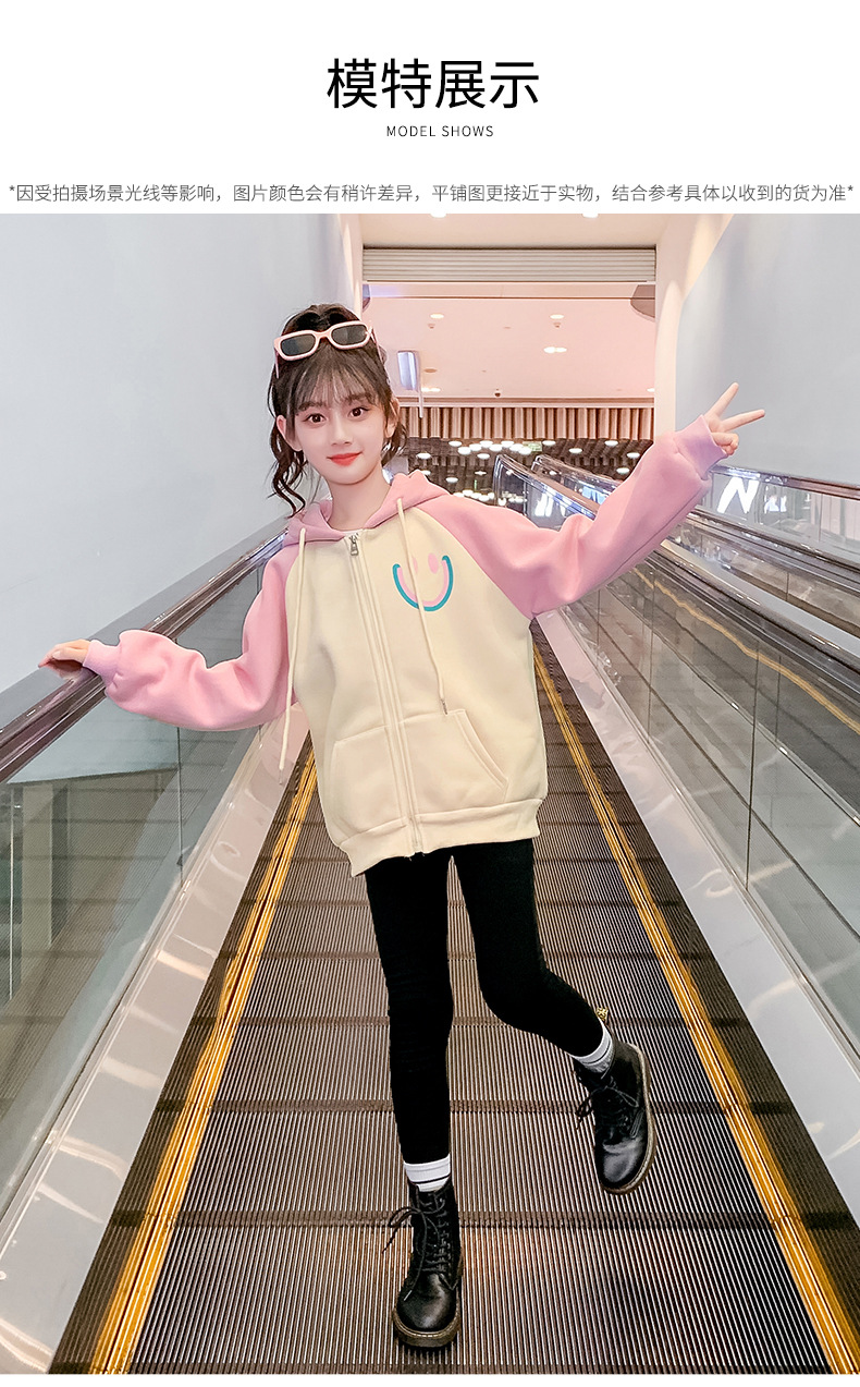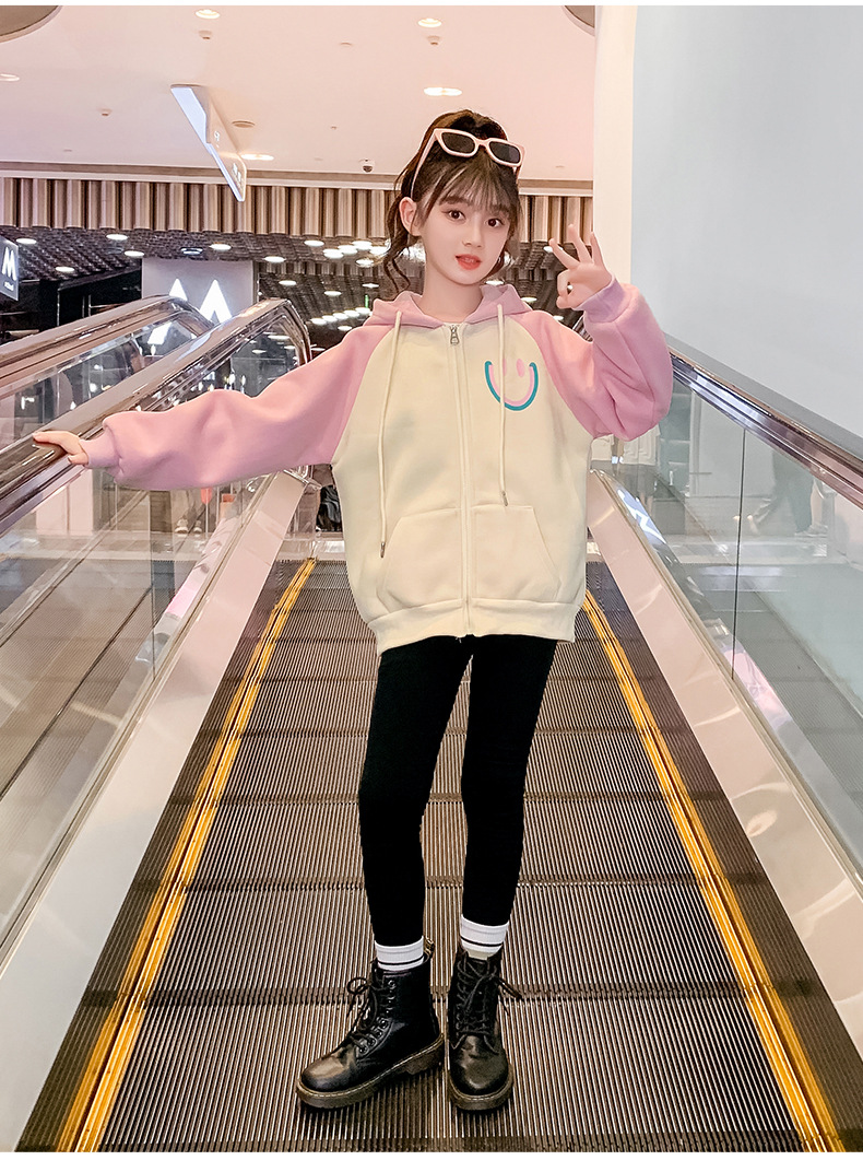 2026 가을 겨울 여아용 새 카디건 재킷 두꺼운 이중 후드 스마일리 페이스 중대형 아동 초등학생 유치원생용스토어 가기