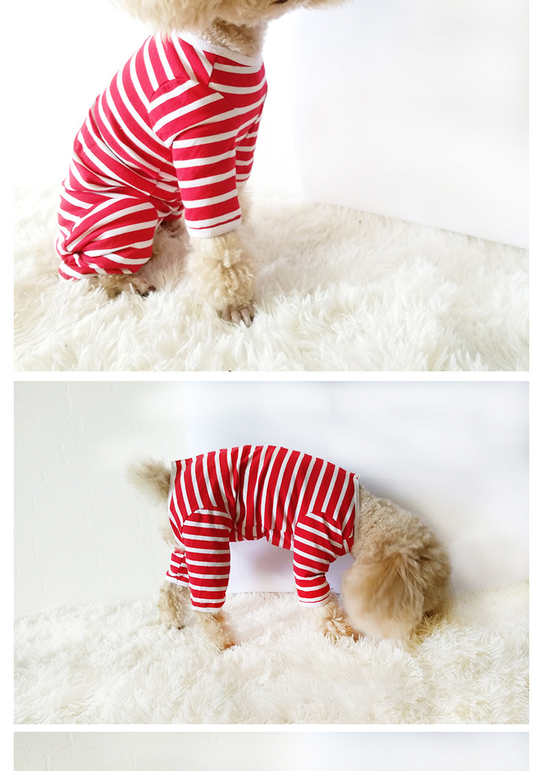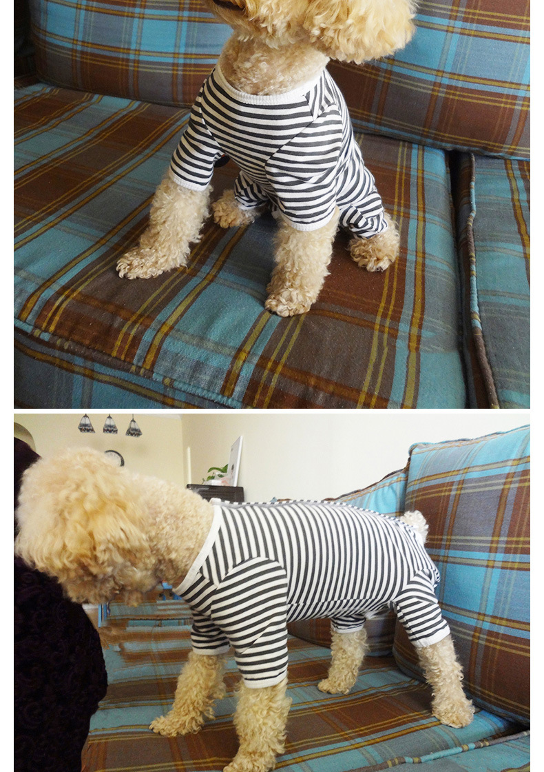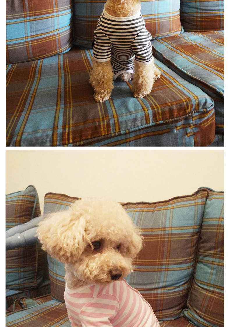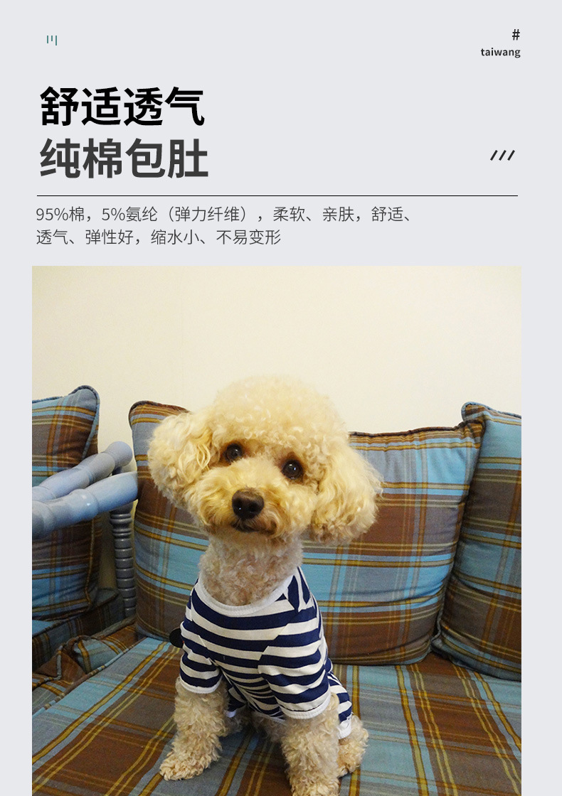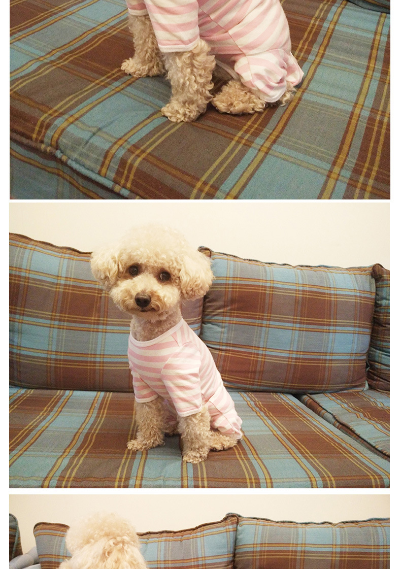 봄과 여름 얇은 테디 독 곰 옷 가방 배꼽 보호 이유식 살균 후 통기성 줄무늬 네 다리 옷