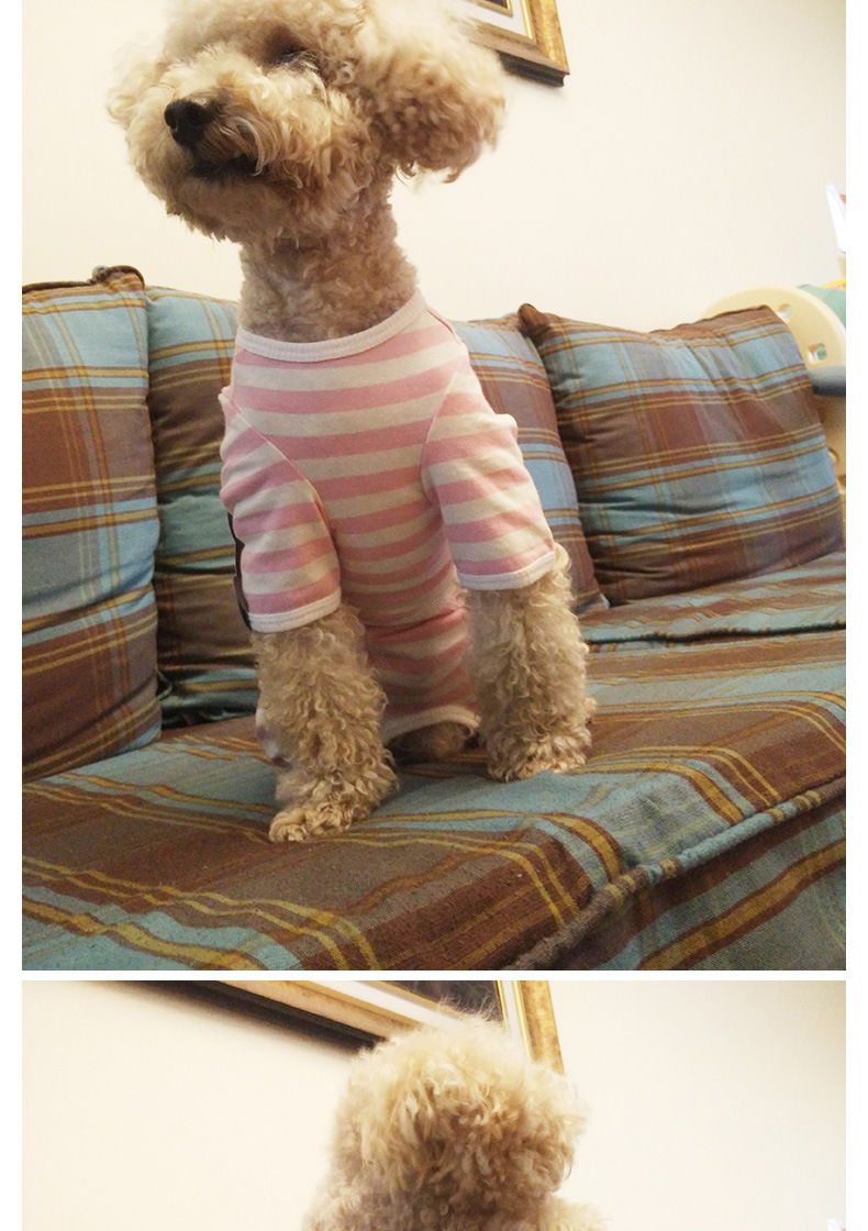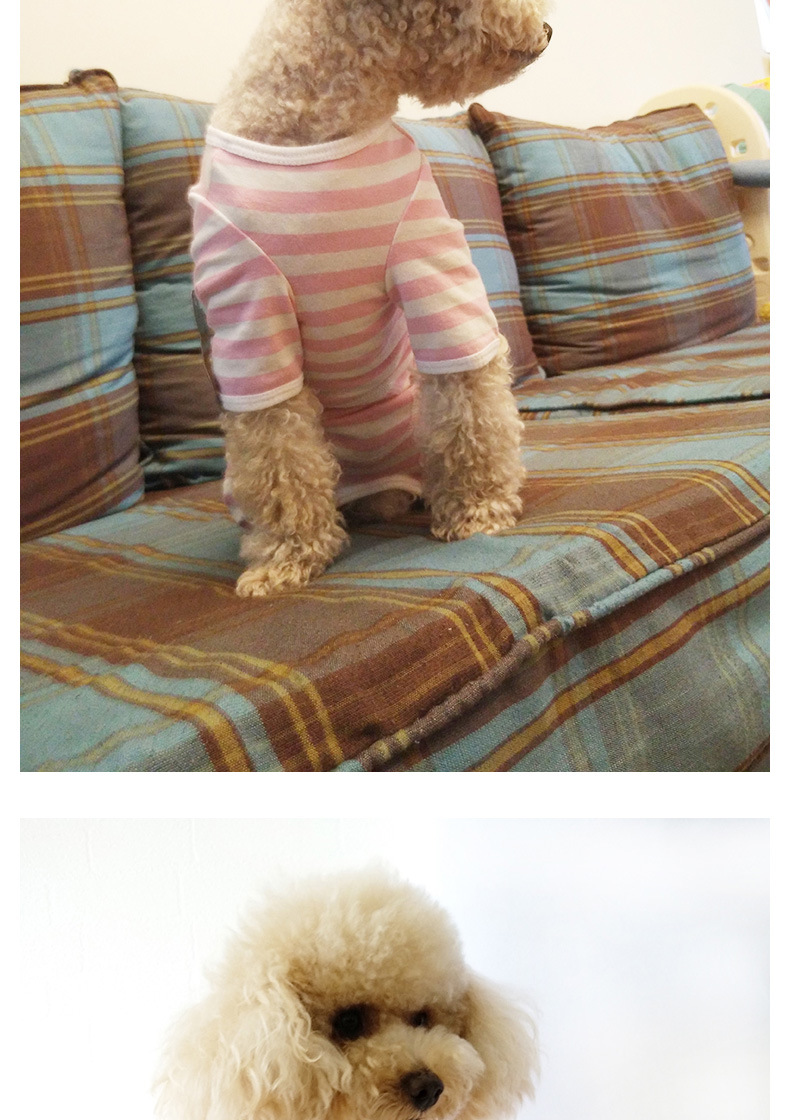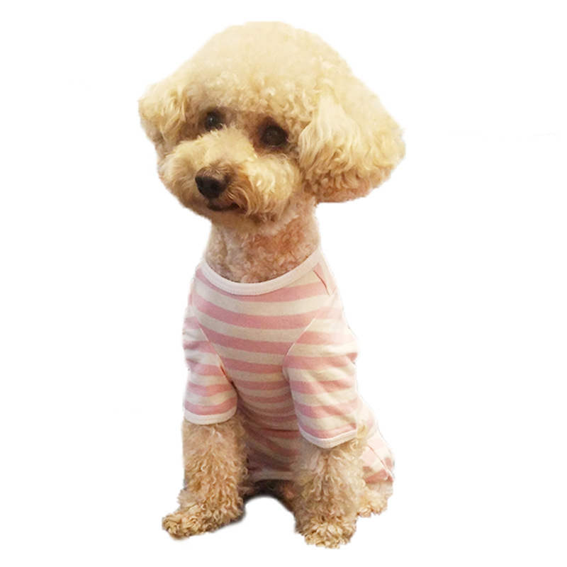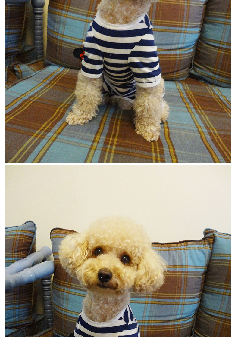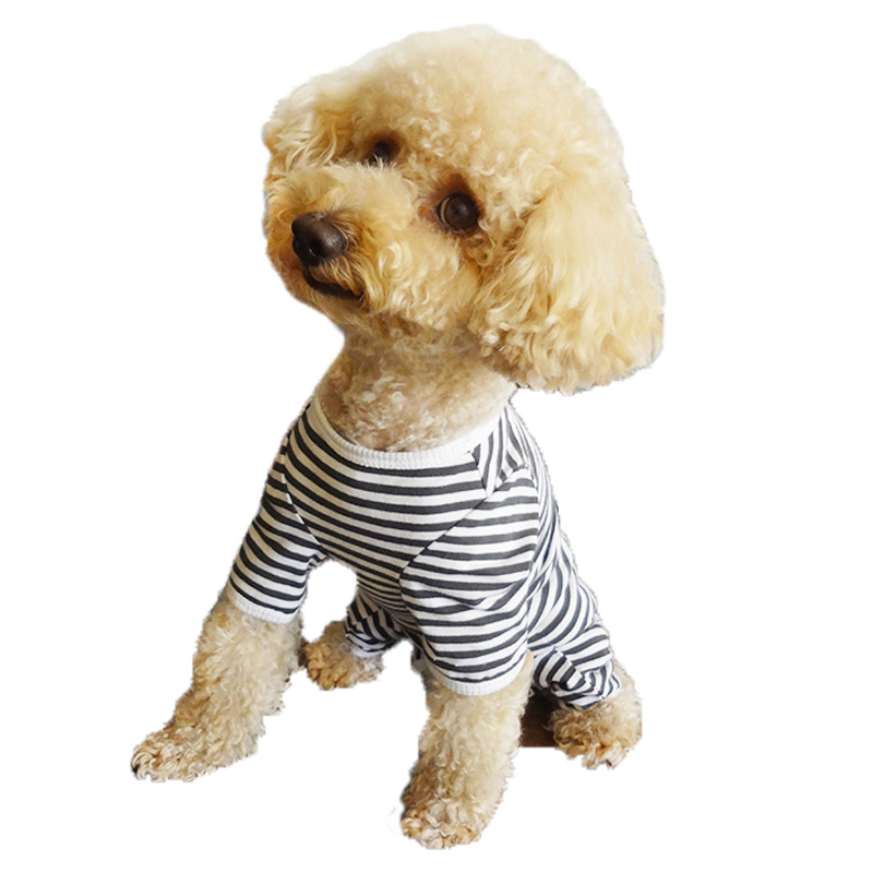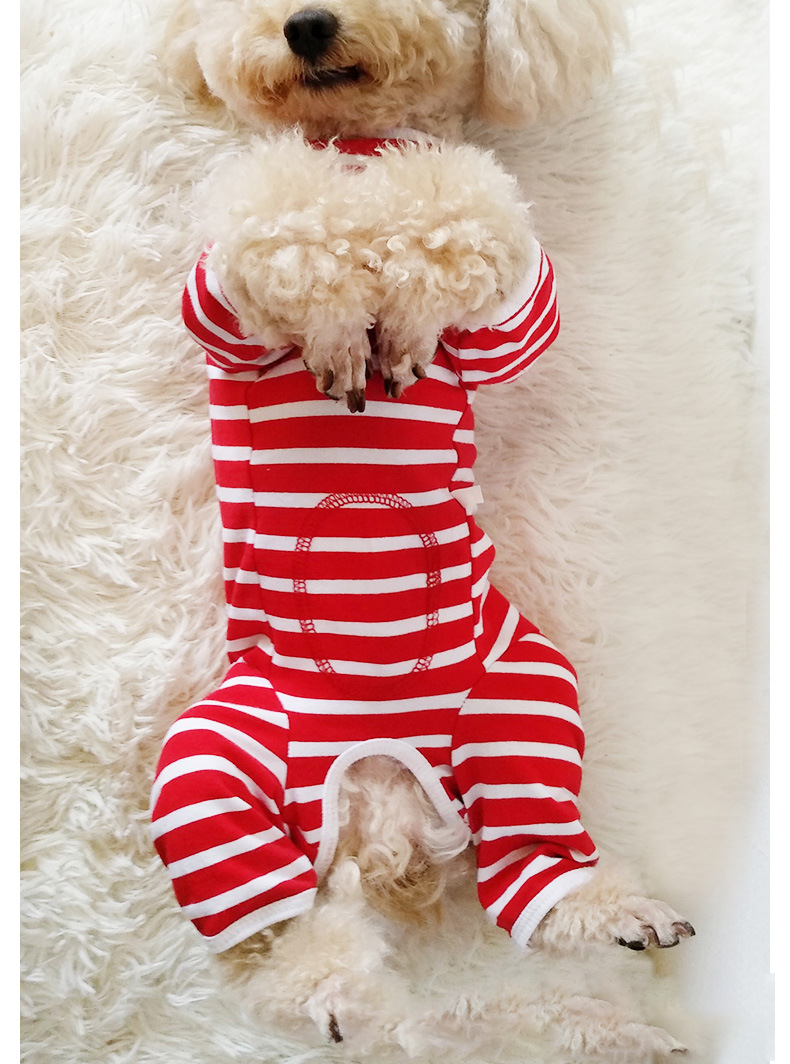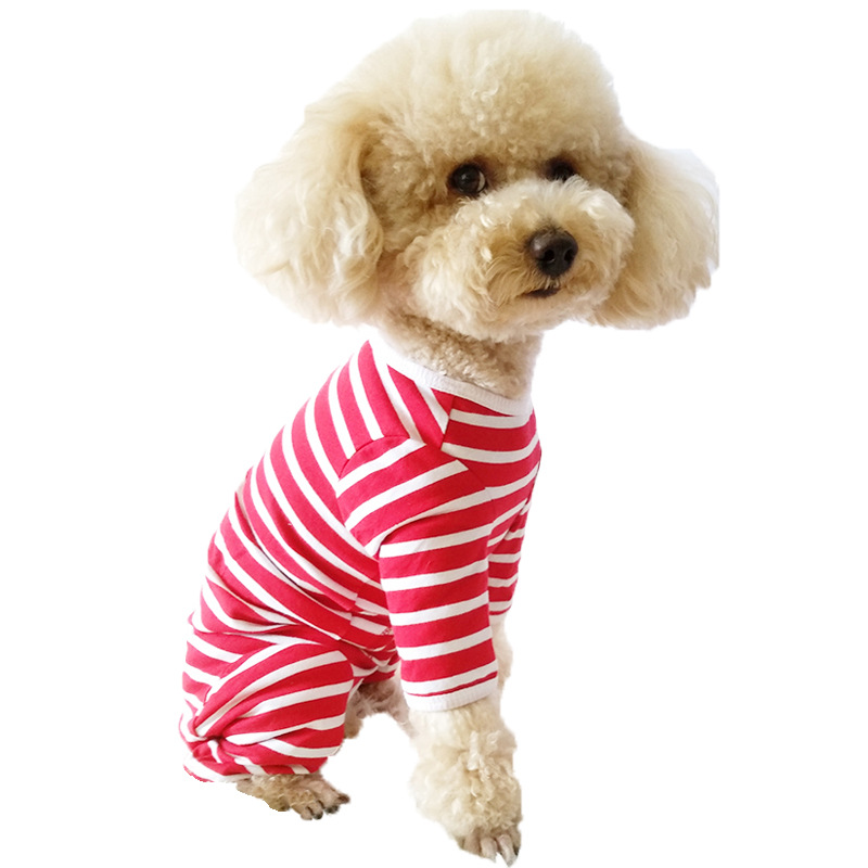 봄과 여름 얇은 테디 독 곰 옷 가방 배꼽 보호 이유식 살균 후 통기성 줄무늬 네 다리 옷