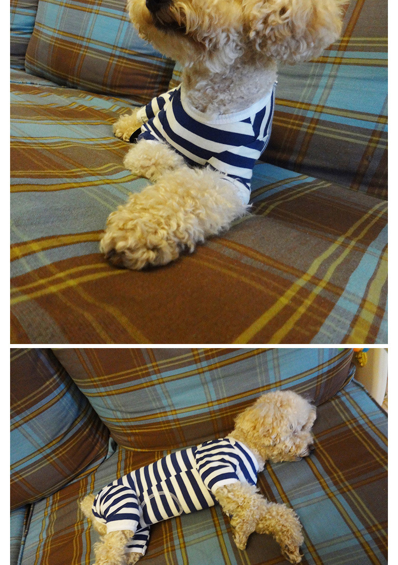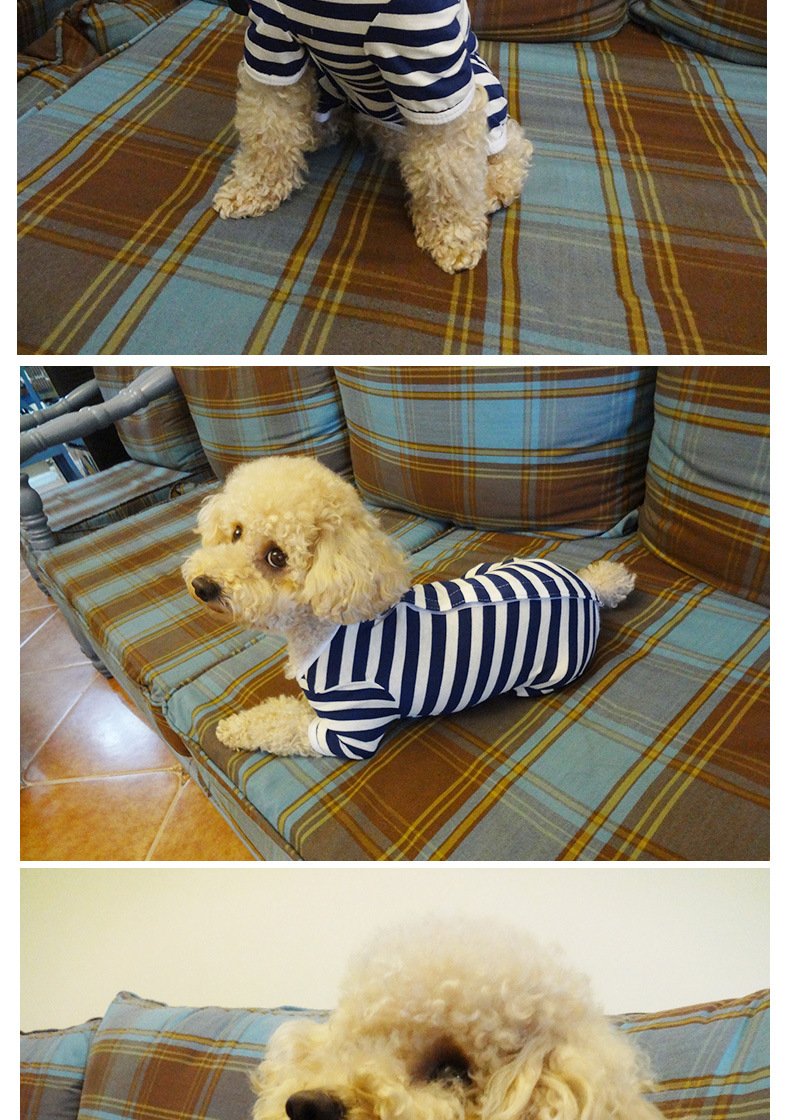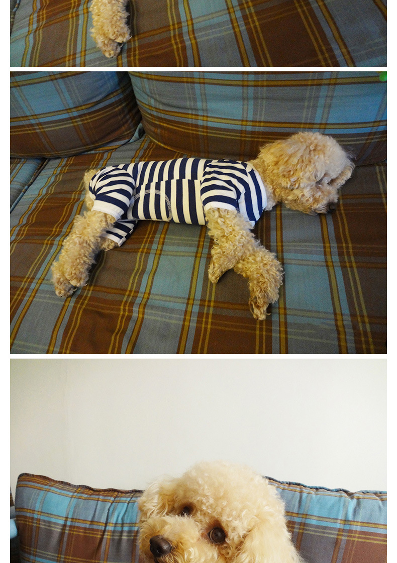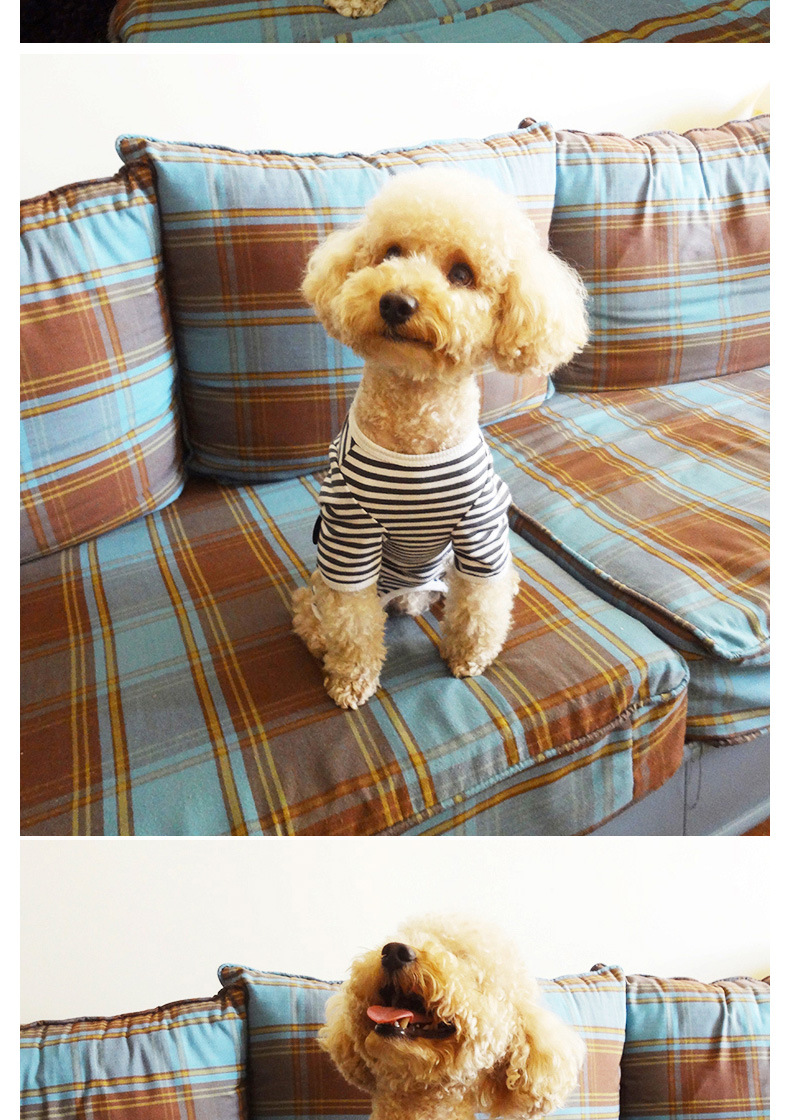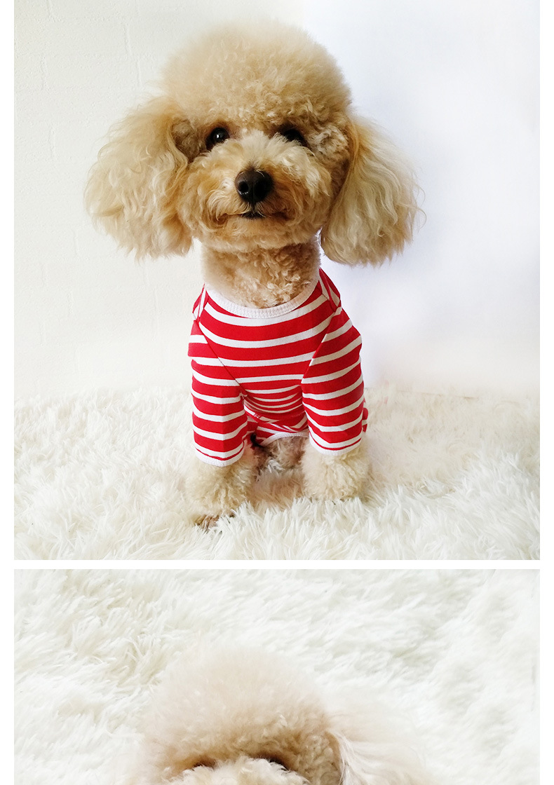 봄과 여름 얇은 테디 독 곰 옷 가방 배꼽 보호 이유식 살균 후 통기성 줄무늬 네 다리 옷