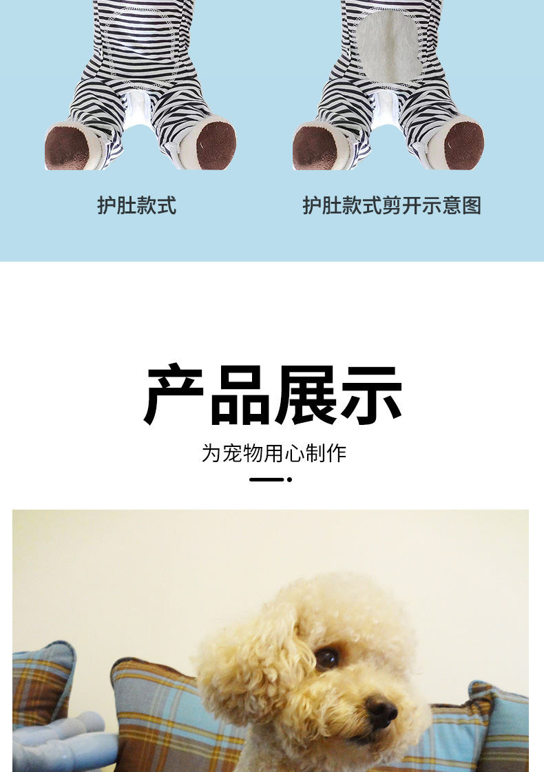 봄과 여름 얇은 테디 독 곰 옷 가방 배꼽 보호 이유식 살균 후 통기성 줄무늬 네 다리 옷스토어 가기