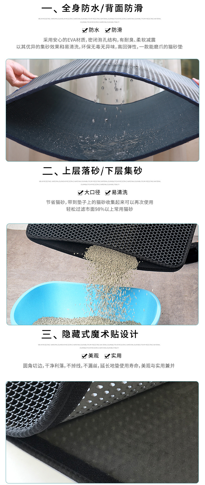 도매 다채로운 eva 애완 동물 미끄럼 방지 바닥 매트 더블 필터 고양이 모래 제어 접는 매트 eva 애완 동물 고양이 모래 매트스토어 가기