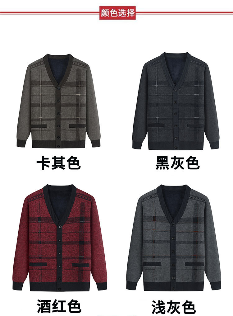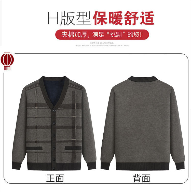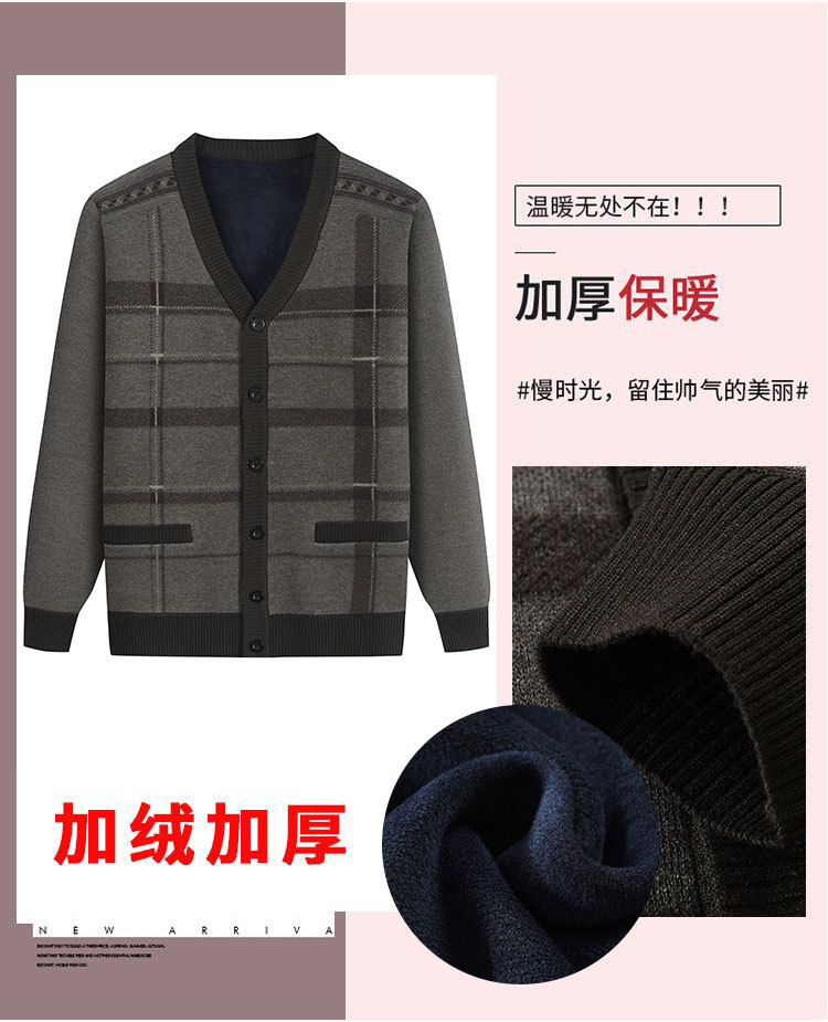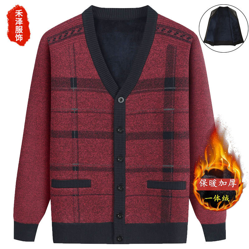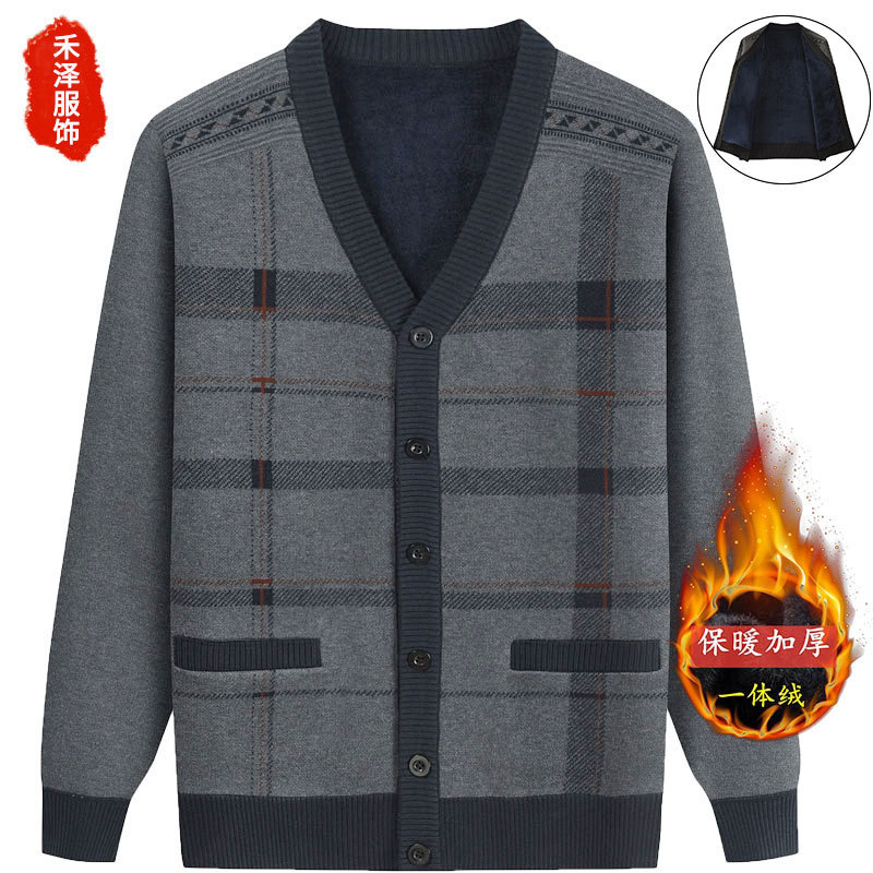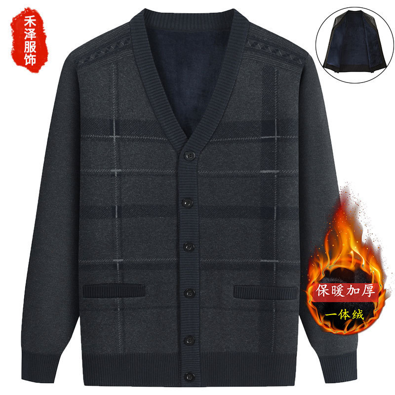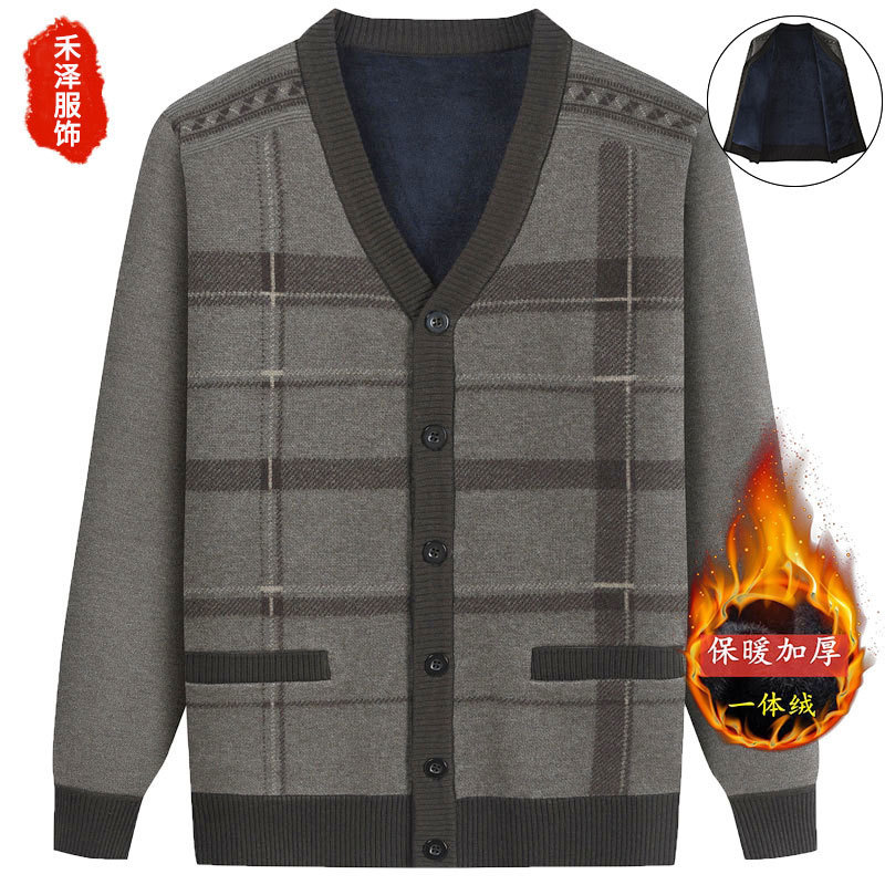 중년 아빠 가을과 겨울 스웨터 늙은 남자의 카디건 기모 따뜻한 재킷 할아버지 캐주얼 니트 옷