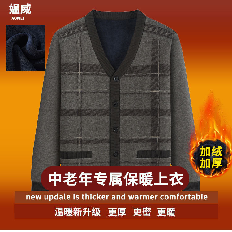 중년 아빠 가을과 겨울 스웨터 늙은 남자의 카디건 기모 따뜻한 재킷 할아버지 캐주얼 니트 옷스토어 가기