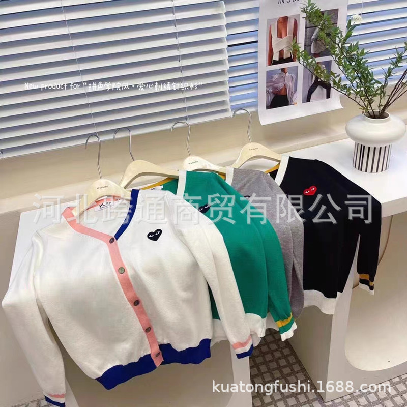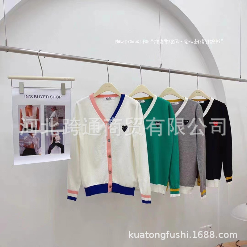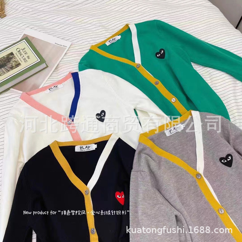 Play川久 여성 카디건 자수 러브 스웨터 니트 볼링 재킷 cdg 컬러 블록 봄, 가을 여성 의류스토어 가기