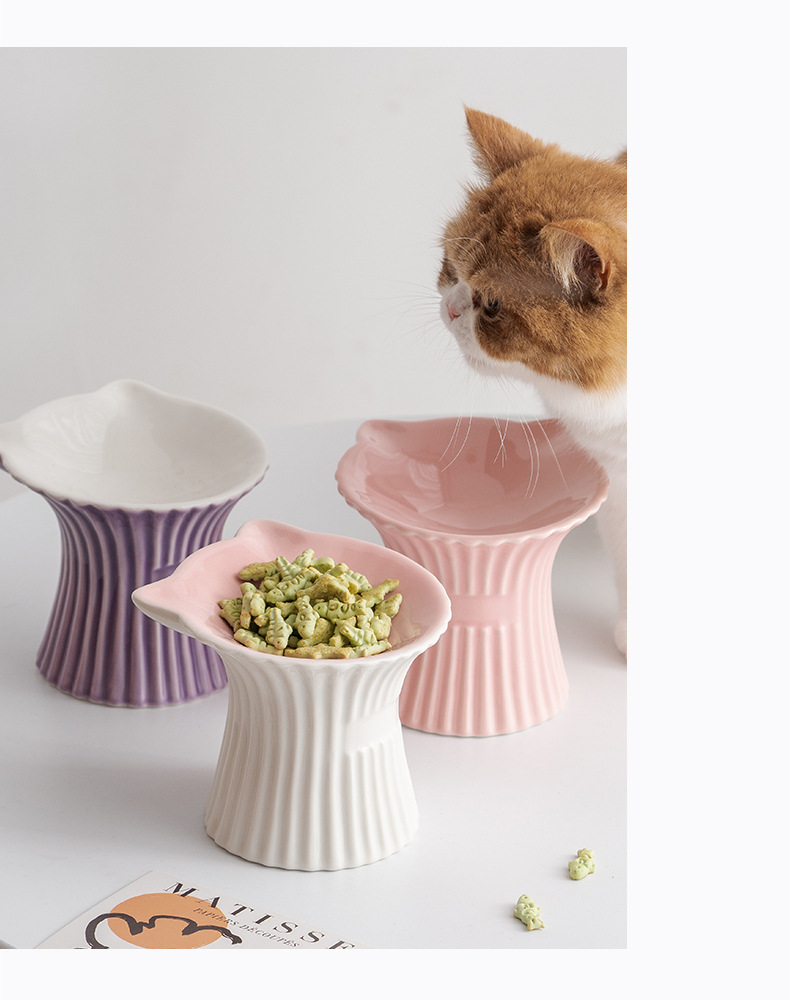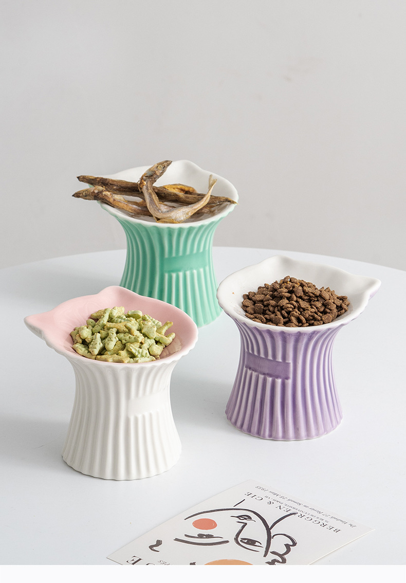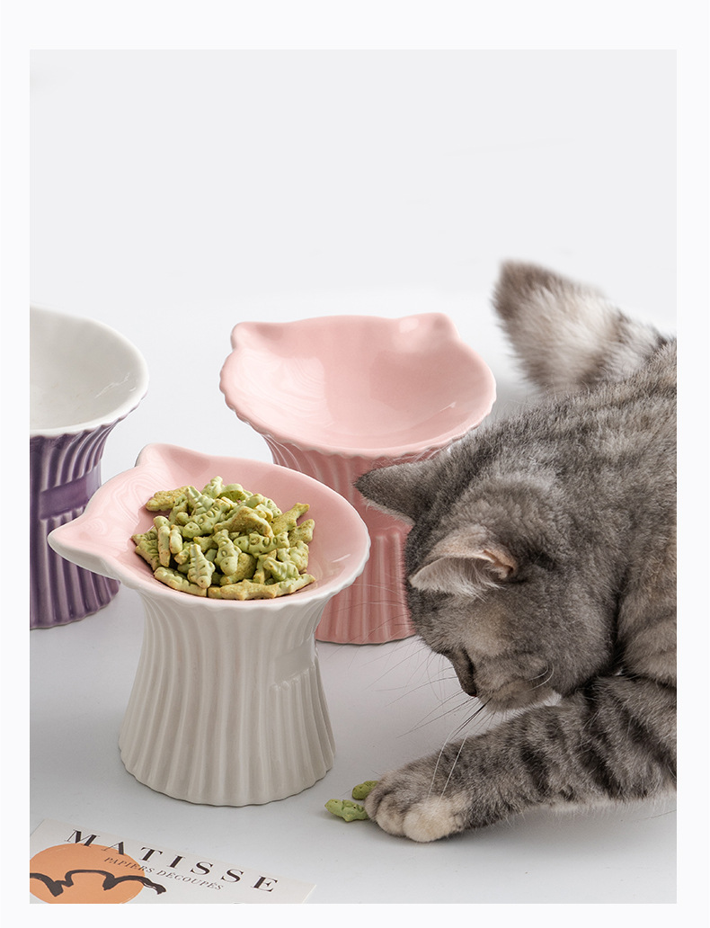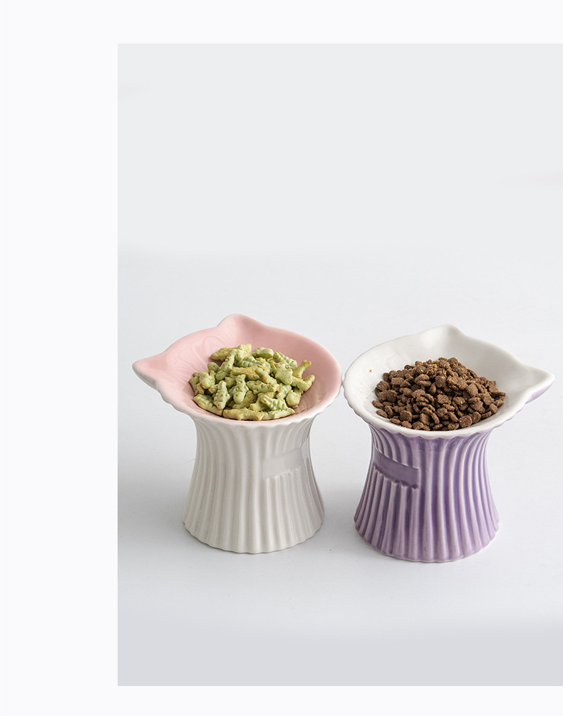 슈멘 애완 동물 세라믹 그릇 고양이 높은 발 식용 그릇 보호 경추 물 그릇 애완 동물 그릇 안티 블랙 턱 용품