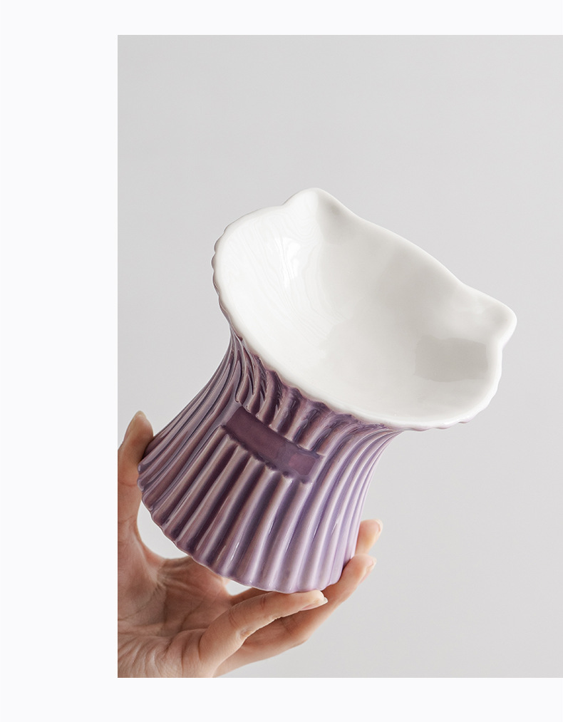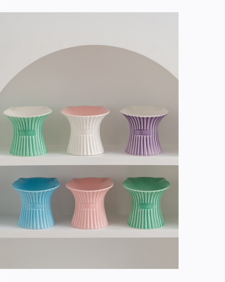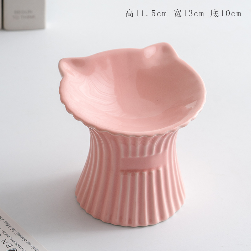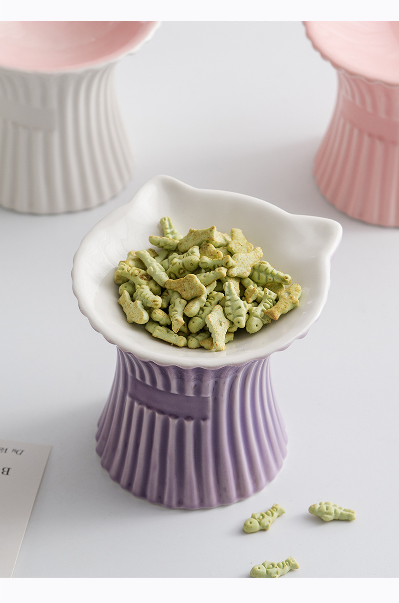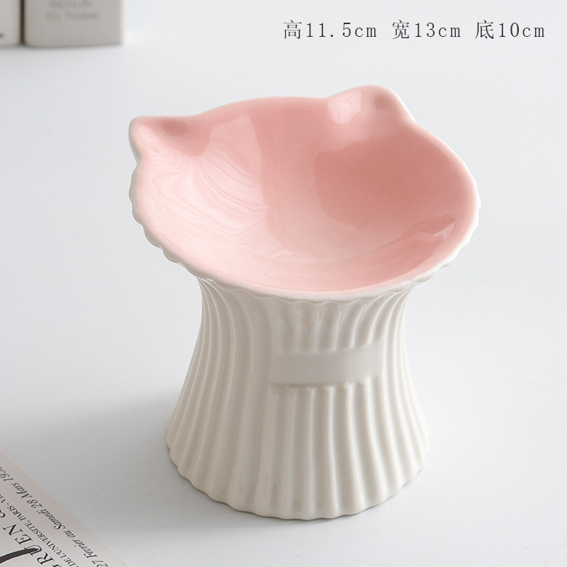 슈멘 애완 동물 세라믹 그릇 고양이 높은 발 식용 그릇 보호 경추 물 그릇 애완 동물 그릇 안티 블랙 턱 용품