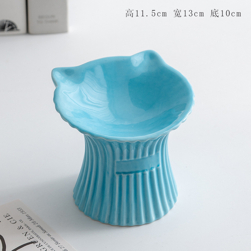 슈멘 애완 동물 세라믹 그릇 고양이 높은 발 식용 그릇 보호 경추 물 그릇 애완 동물 그릇 안티 블랙 턱 용품스토어 가기