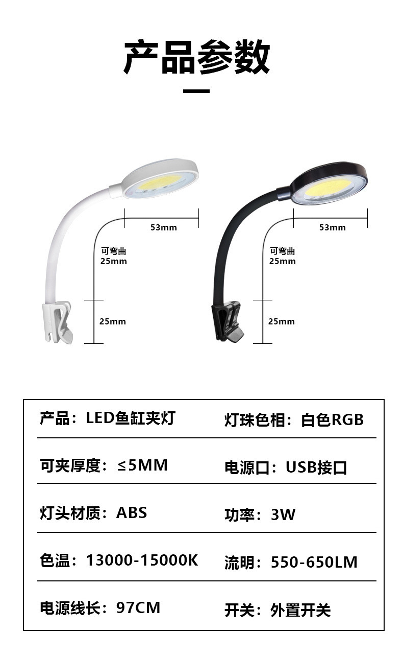 • USB 미니 작은 클립 램프 블랙