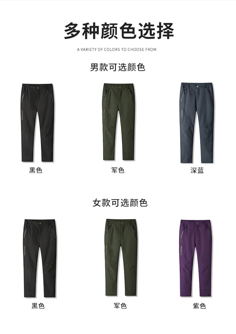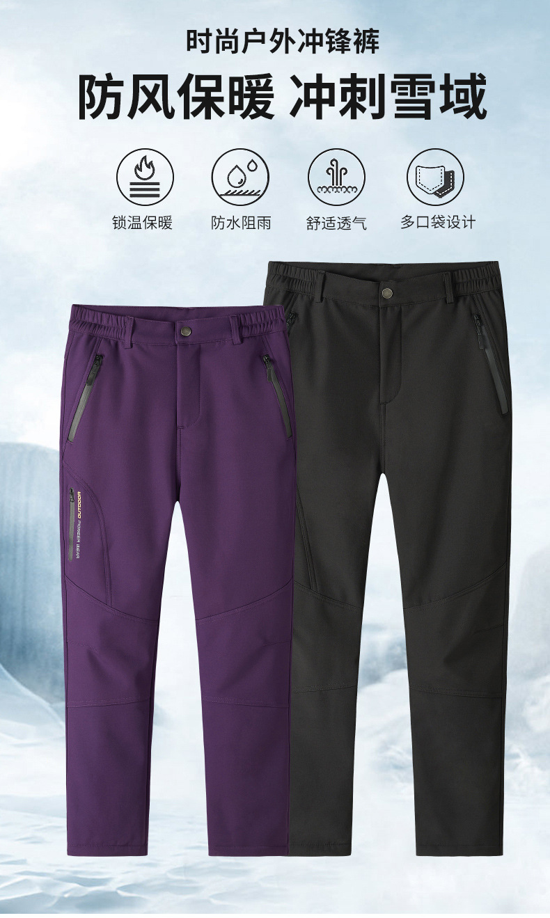 야외 겨울 부드러운 쉘 바지 기모 두꺼운 충전 바지 방풍 방수 남성과 여성의 플러스 사이즈 등산 바지 도매 인쇄 로고