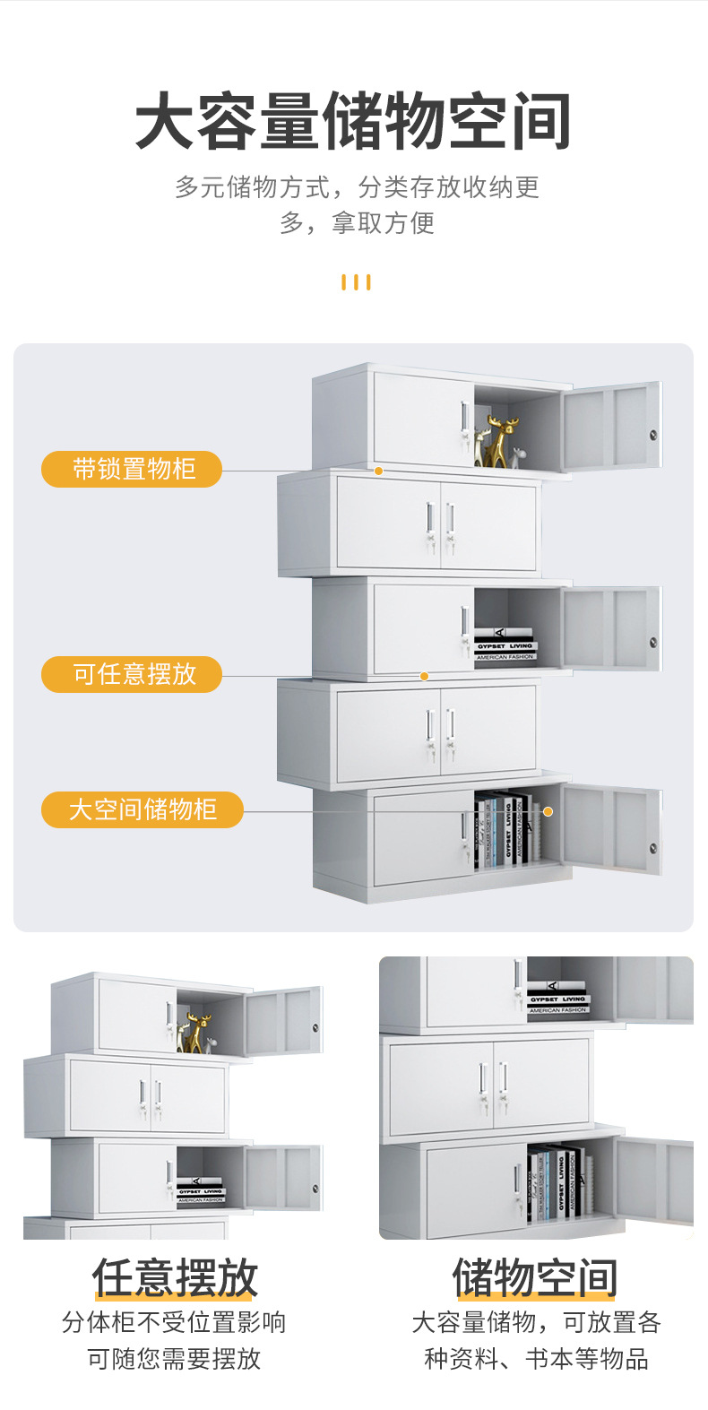 学校办公室钢制五节分体文件柜带锁储存凭证柜铁皮资料档案柜矮柜