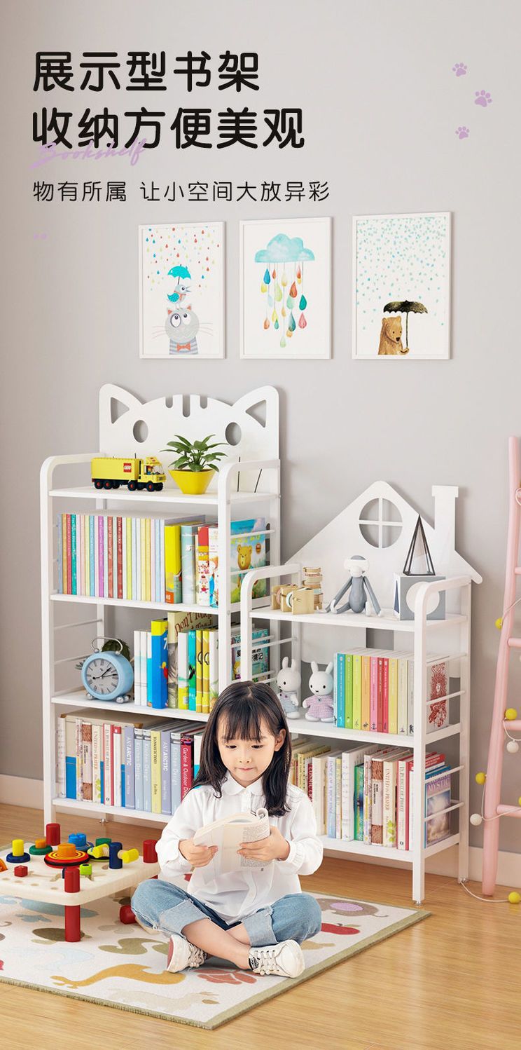 작은 철 책장 바닥 스토리지 랙 만화 어린이 책장 그림책 랙 아기 장난감 스토리지 랙 간단한스토어 가기