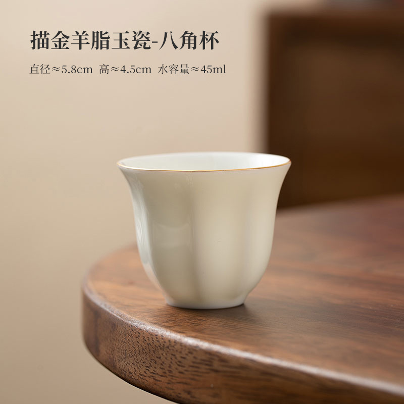 • 금색 양 지방 옥 도자기 [팔각형 컵] 약 45ml 싱글