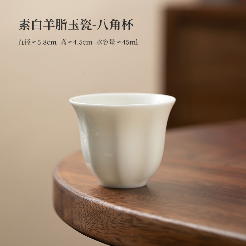• 플레인 화이트 스엣 옥 도자기 [팔각 컵] 약 45ml 싱글